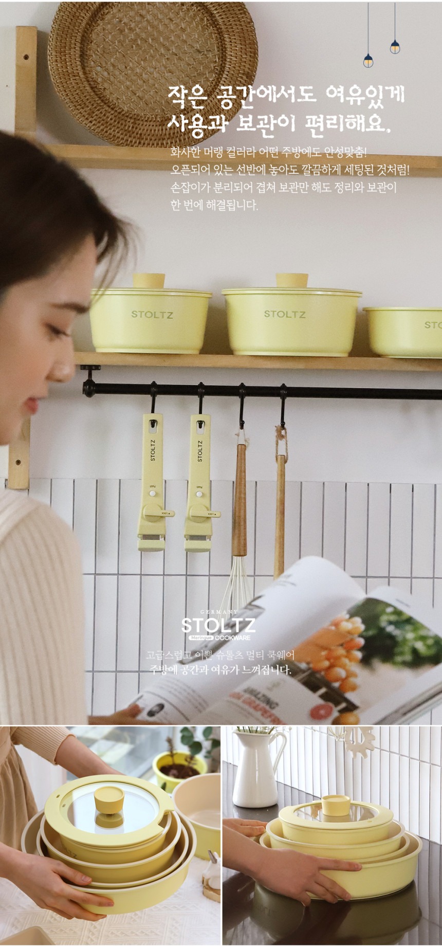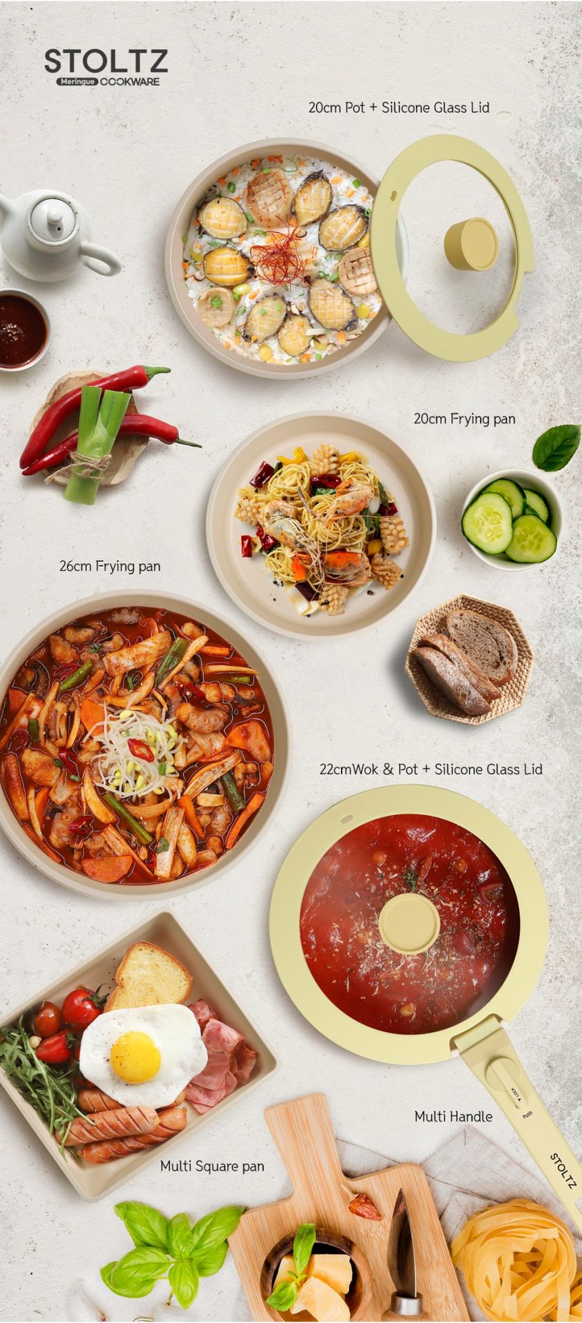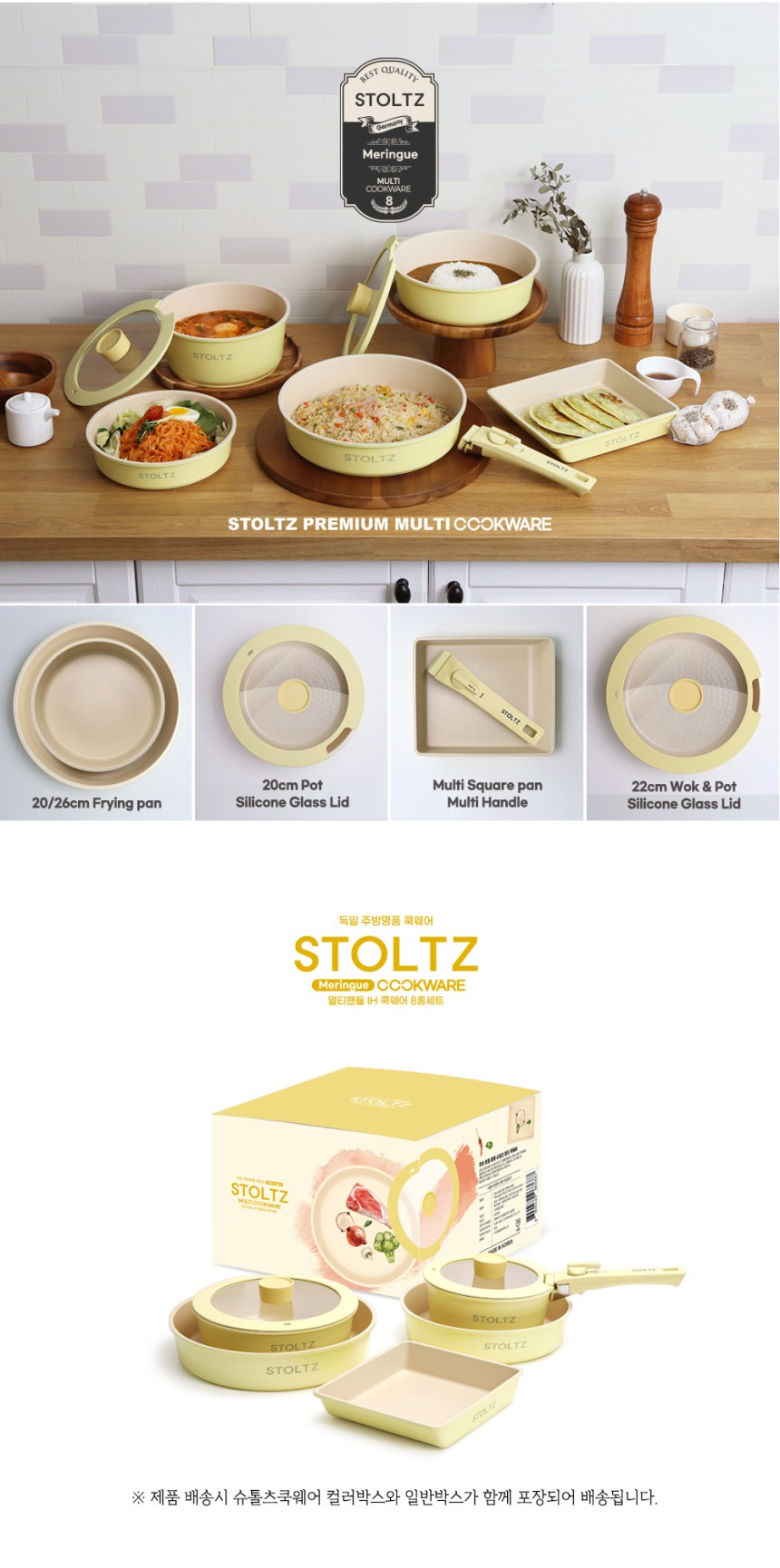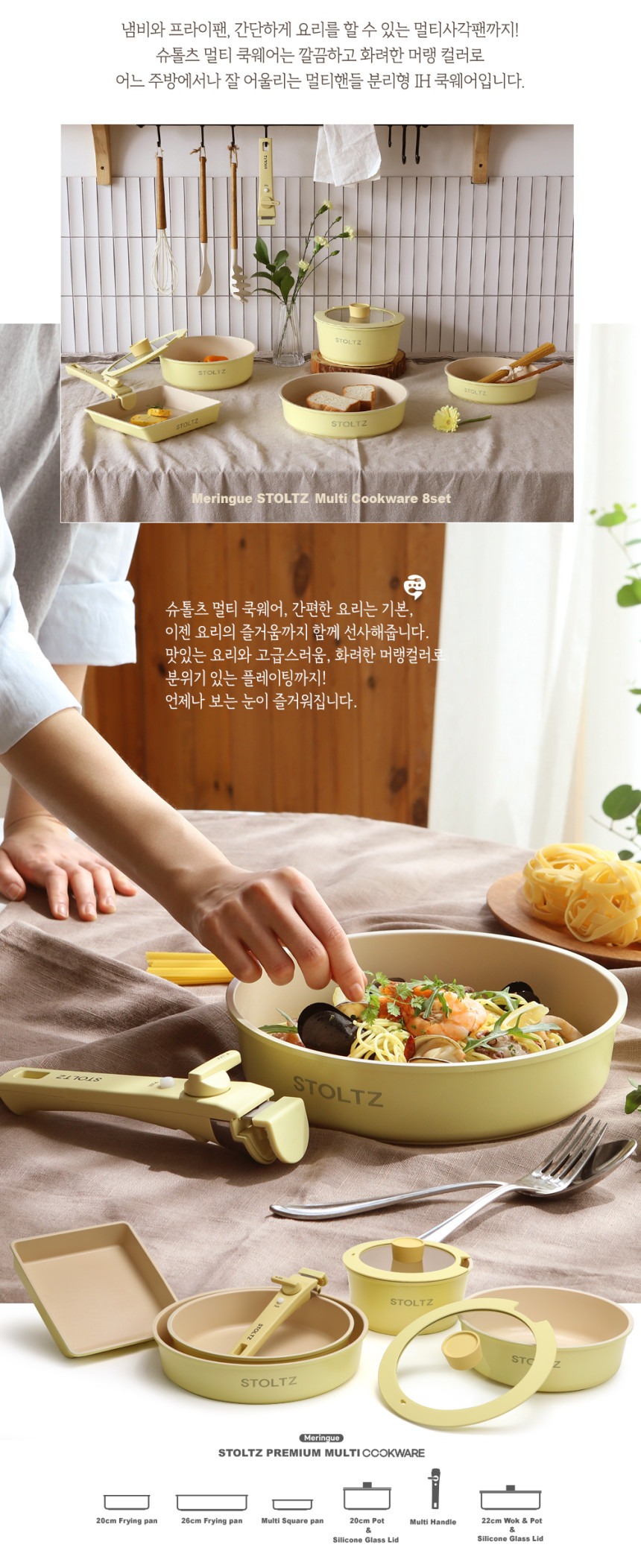 这款时尚实用的炊具套装专为现代厨房设计,采用柔和的柠檬蛋白酥皮色,并采用多层结构,以实现均匀的加热效果。适用于多种热源,包括电磁炉,满足您日常烹饪的各种需求。