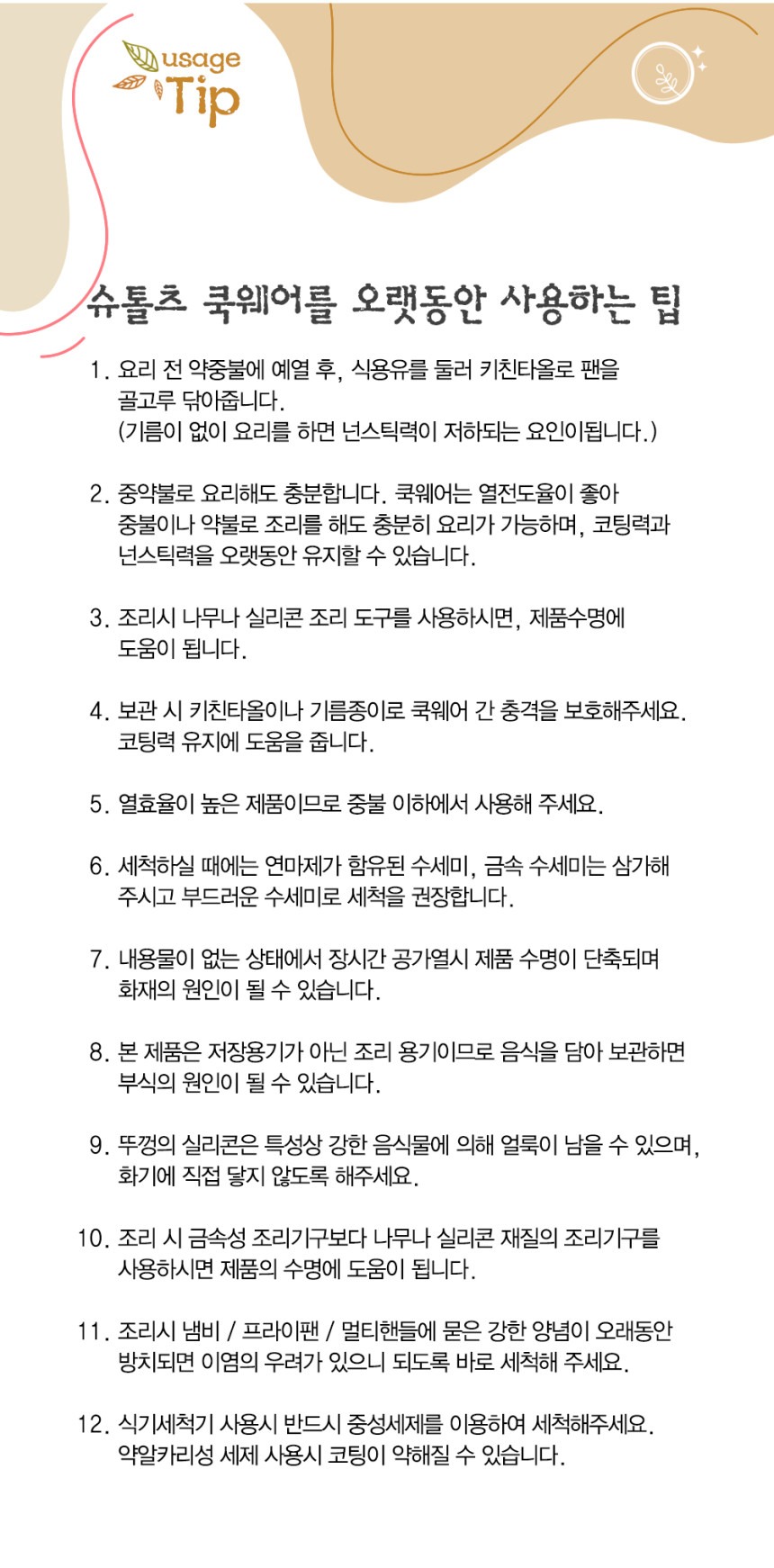 请勿使用金属厨具,以免造成损坏表面损伤