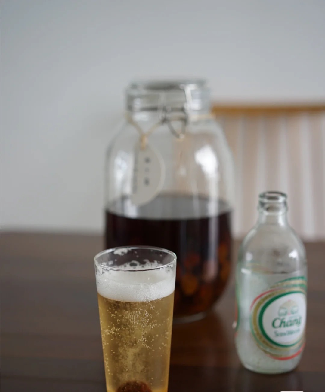 梅味香浓,加了一点冰一点气泡水