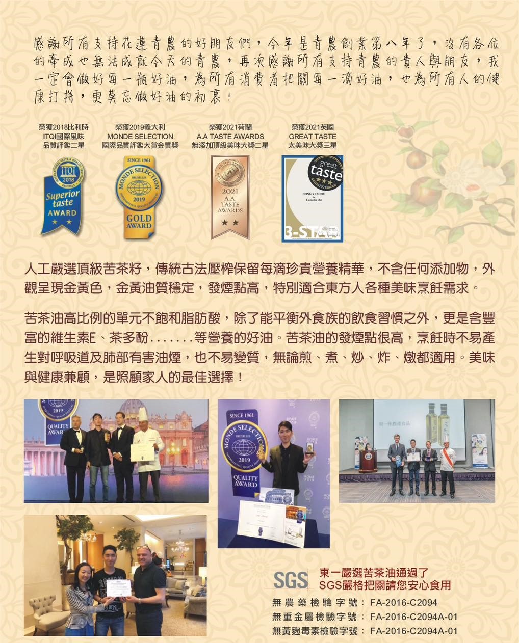 榮獲2021荷蘭A.A TASTE AWARDS無添加頂級美味大獎二星