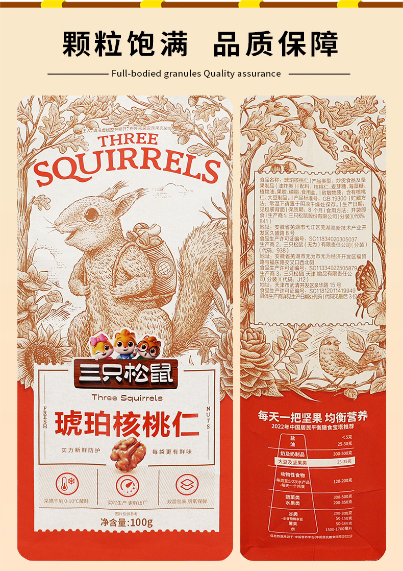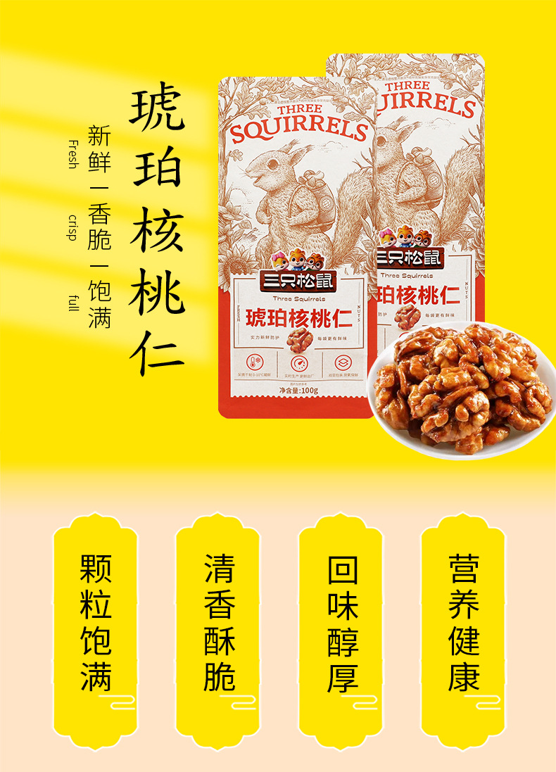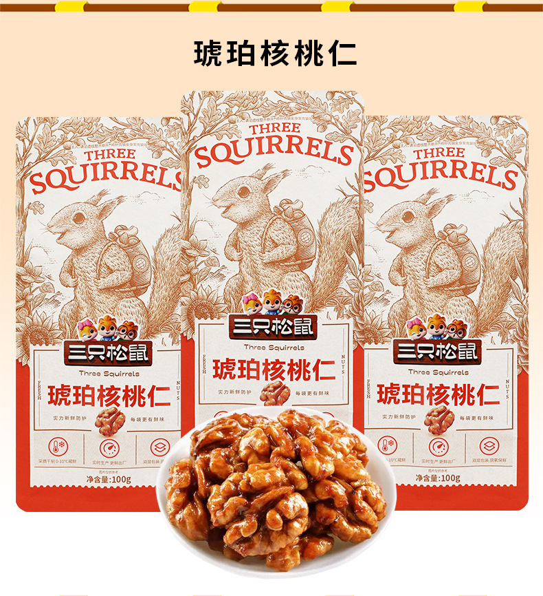 Three Squirrels Amber Walnut Kernels 120g* 1 pack