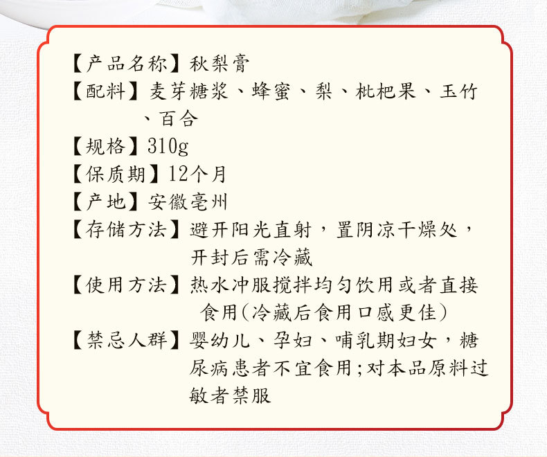 同仁堂秋梨膏310g