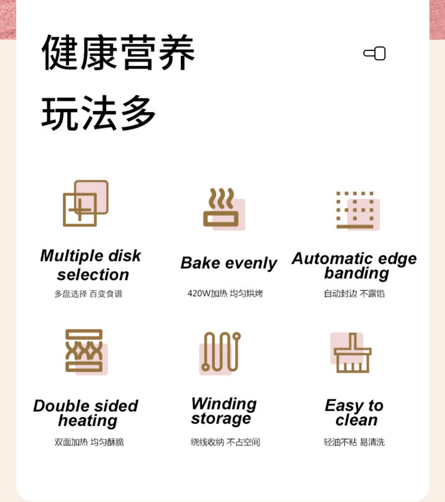 Waffle Sandwich Breakfast Maker, Pink 1 cái