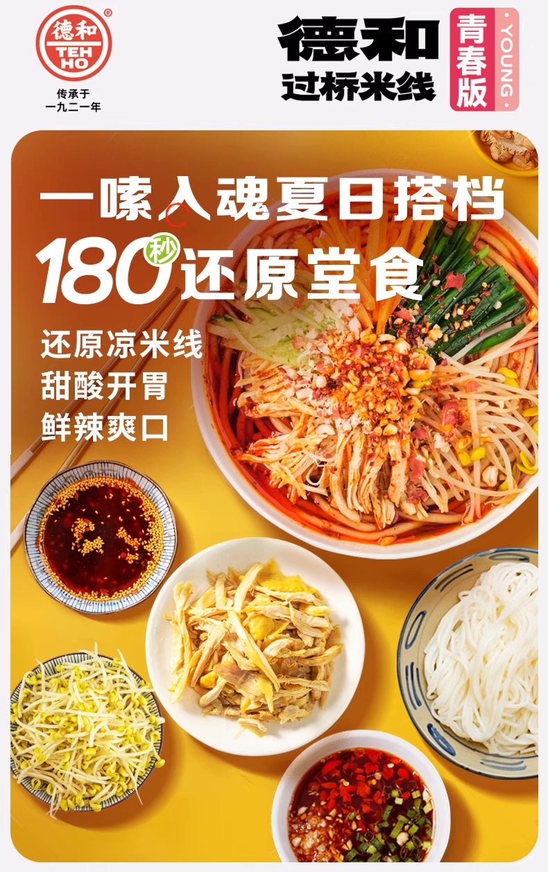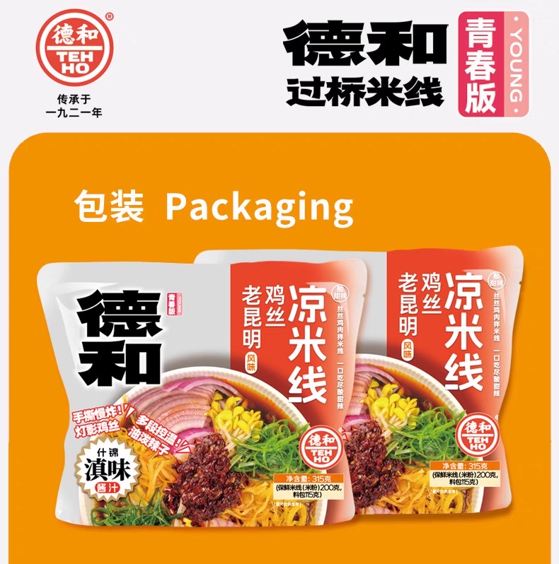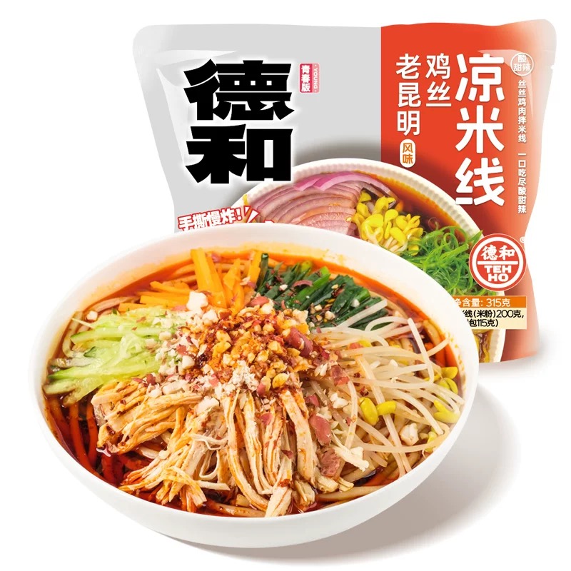 • 以云南传统凉米线为基础,融入德和品牌的秘制调味工艺。云南凉米线自古是滇中夏季消暑主食,德和作为百年老字号,结合滇菜酸甜辣的风味特点,用鸡丝替代传统猪肉,形成更清爽的口感,成为云南凉食文化的代表之一。