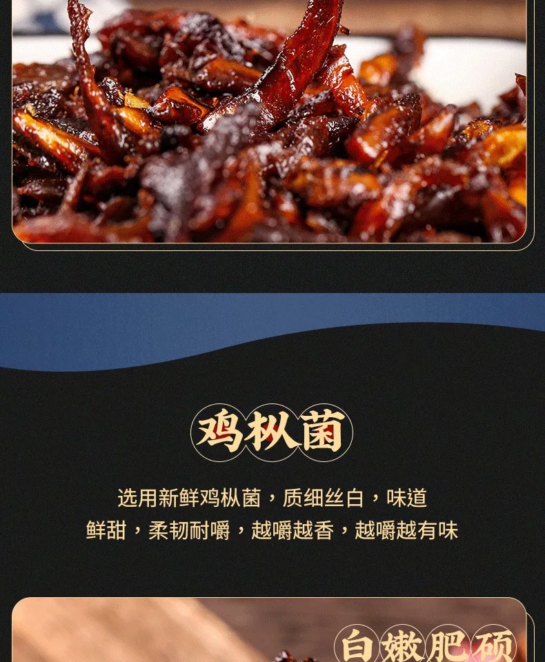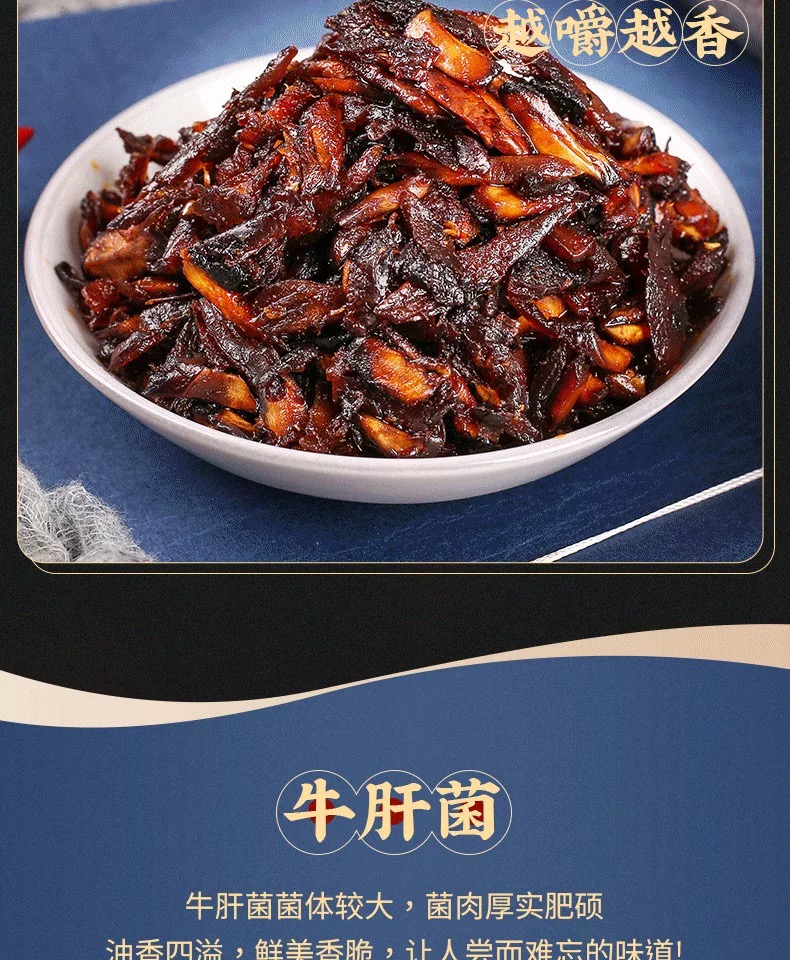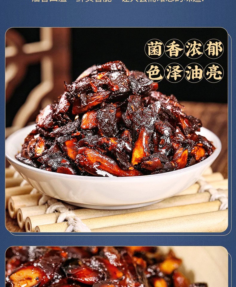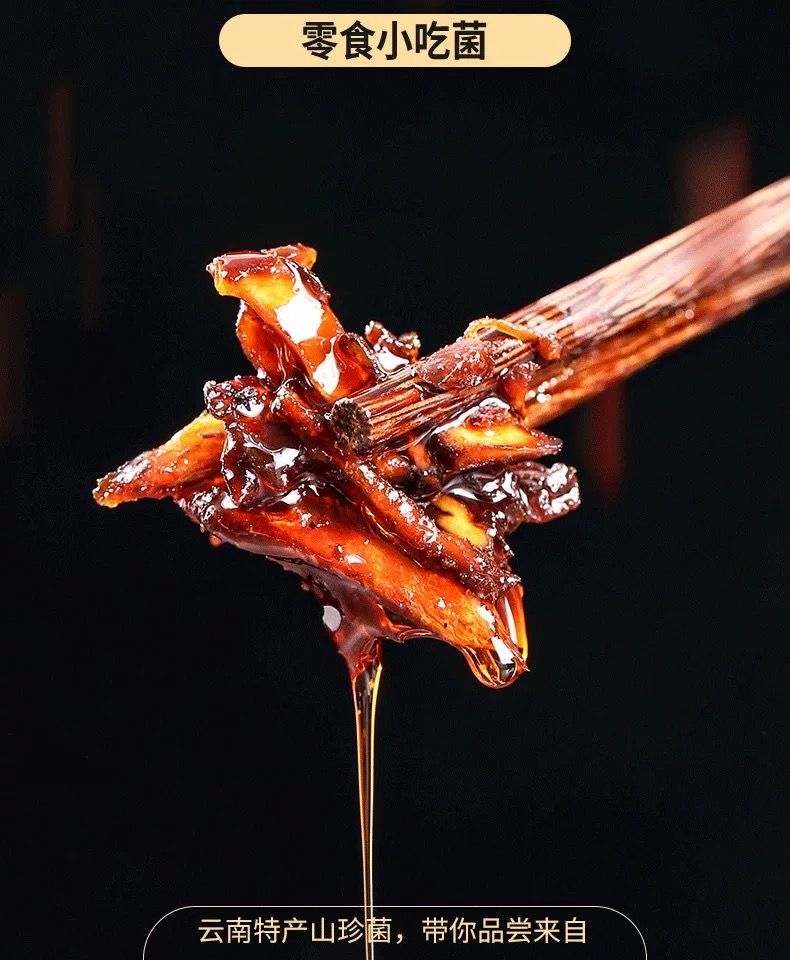 • 口感:菌肉经油炸后收缩,表面形成一层焦脆层,而内里仍保留一定的湿润感,酱香风味突出,辣味与菌香相互交融。