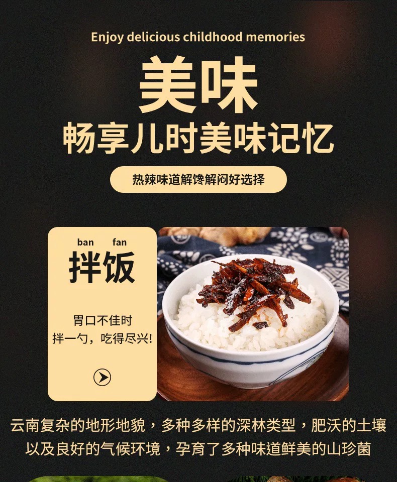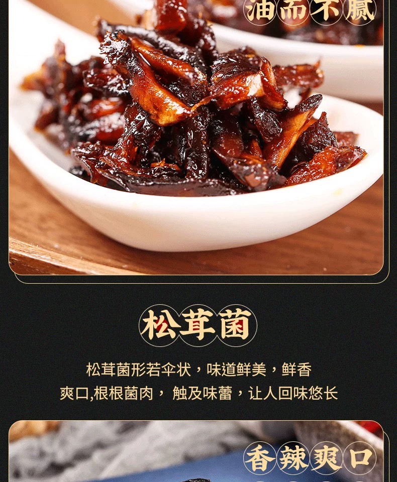 • 工艺:先将各种菌菇进行预处理,然后与调料一起炒制或油炸,使菌菇充分吸收调料的香味。