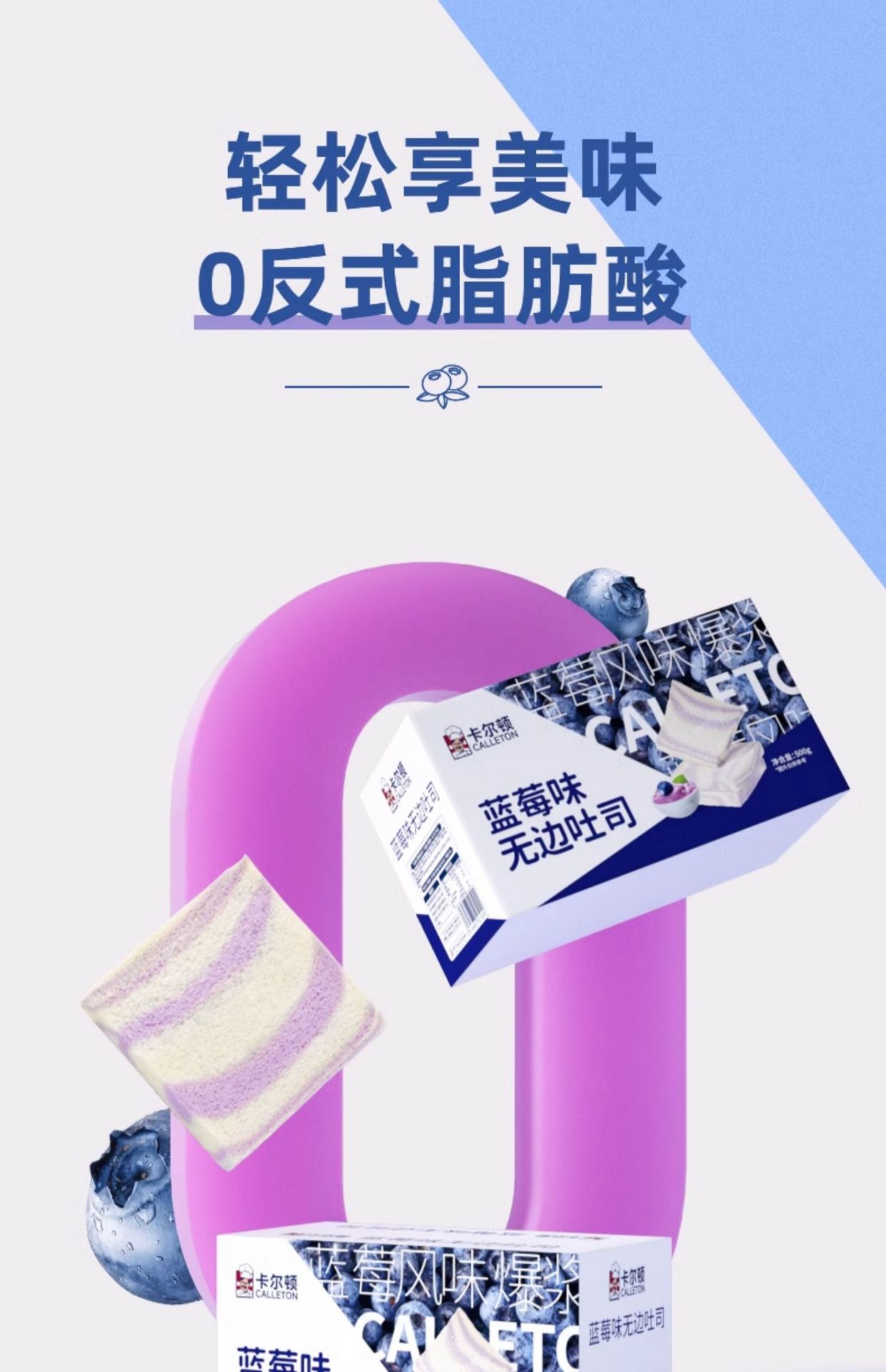 【卡尔顿】蓝莓味无边吐司 一箱约10包 500 克