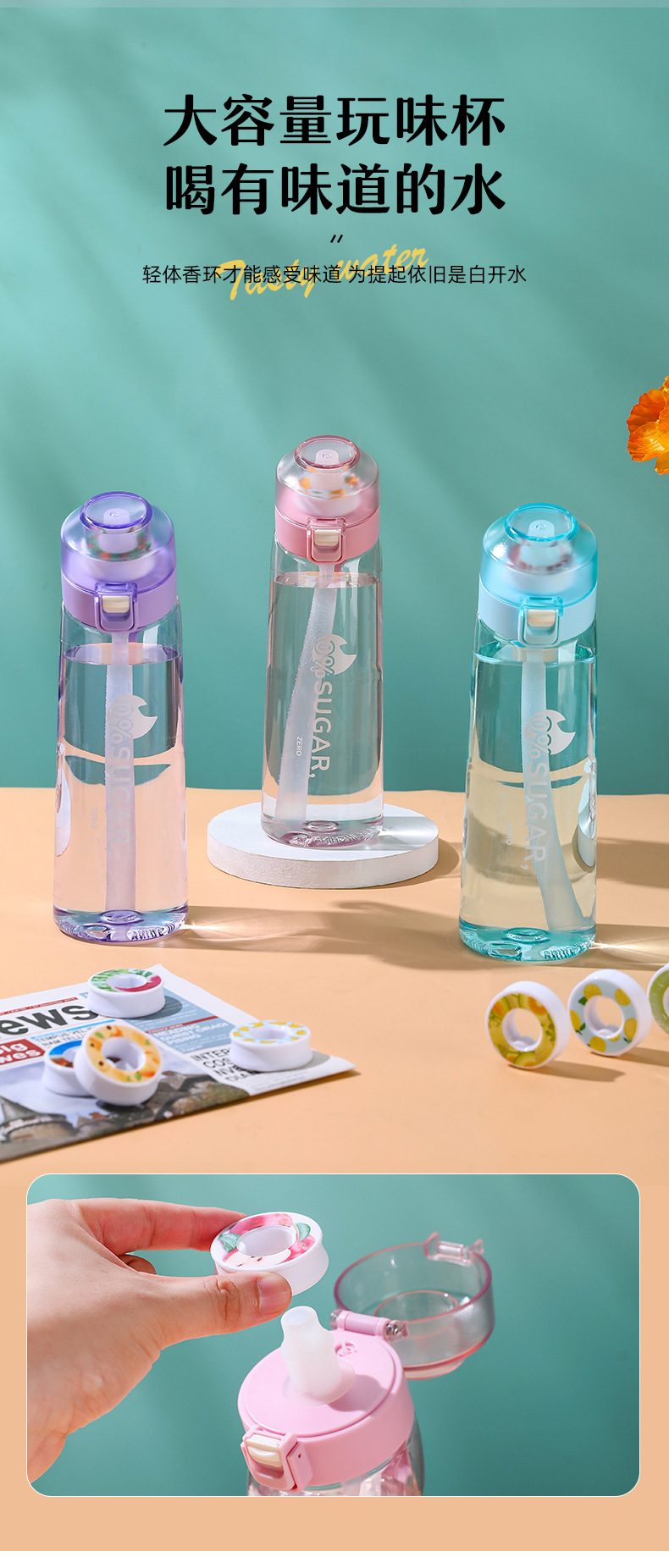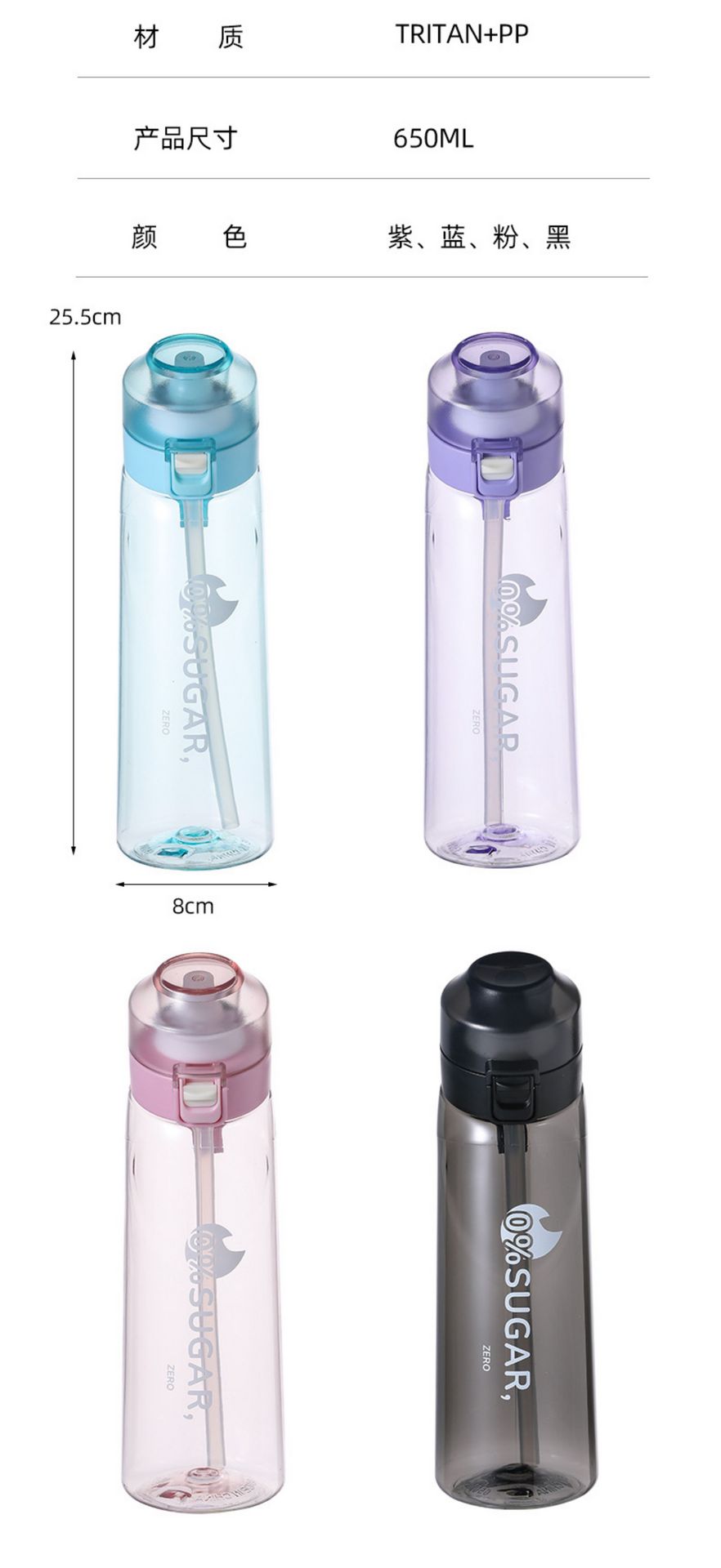 爆款0糖0卡玩味杯 户外香味水杯运动杯tritan萃香环杯 650ml《磨砂紫+7味》 1 个