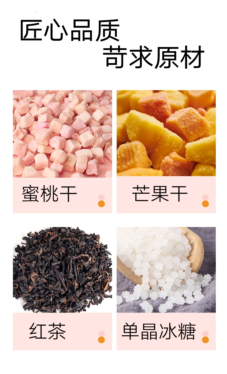 蜜桃:优选脆桃(如鹰嘴桃)或软桃(如蟠桃),脆桃带来清爽果肉感,软桃释放更多果糖(甜度约 10-14°Brix),搭配 果胶 增加茶汤绵密感。