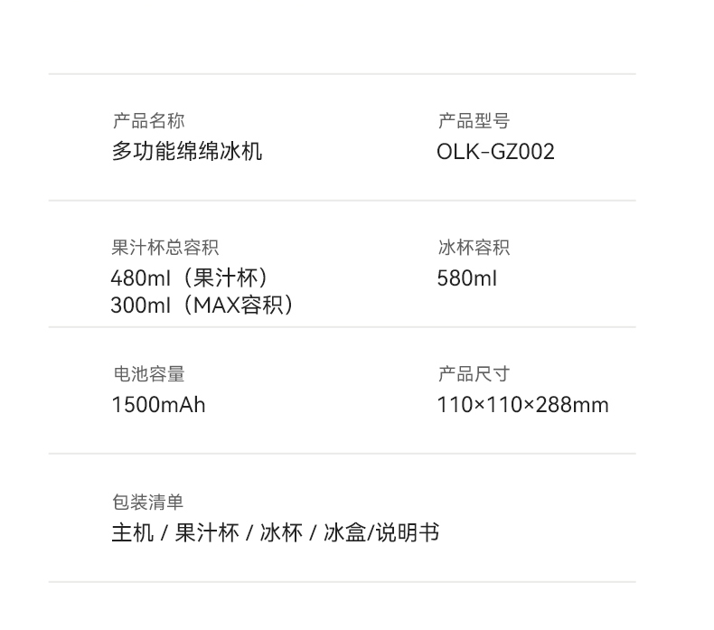 歐萊克多功能綿冰機OLK-GZ002 1130 克