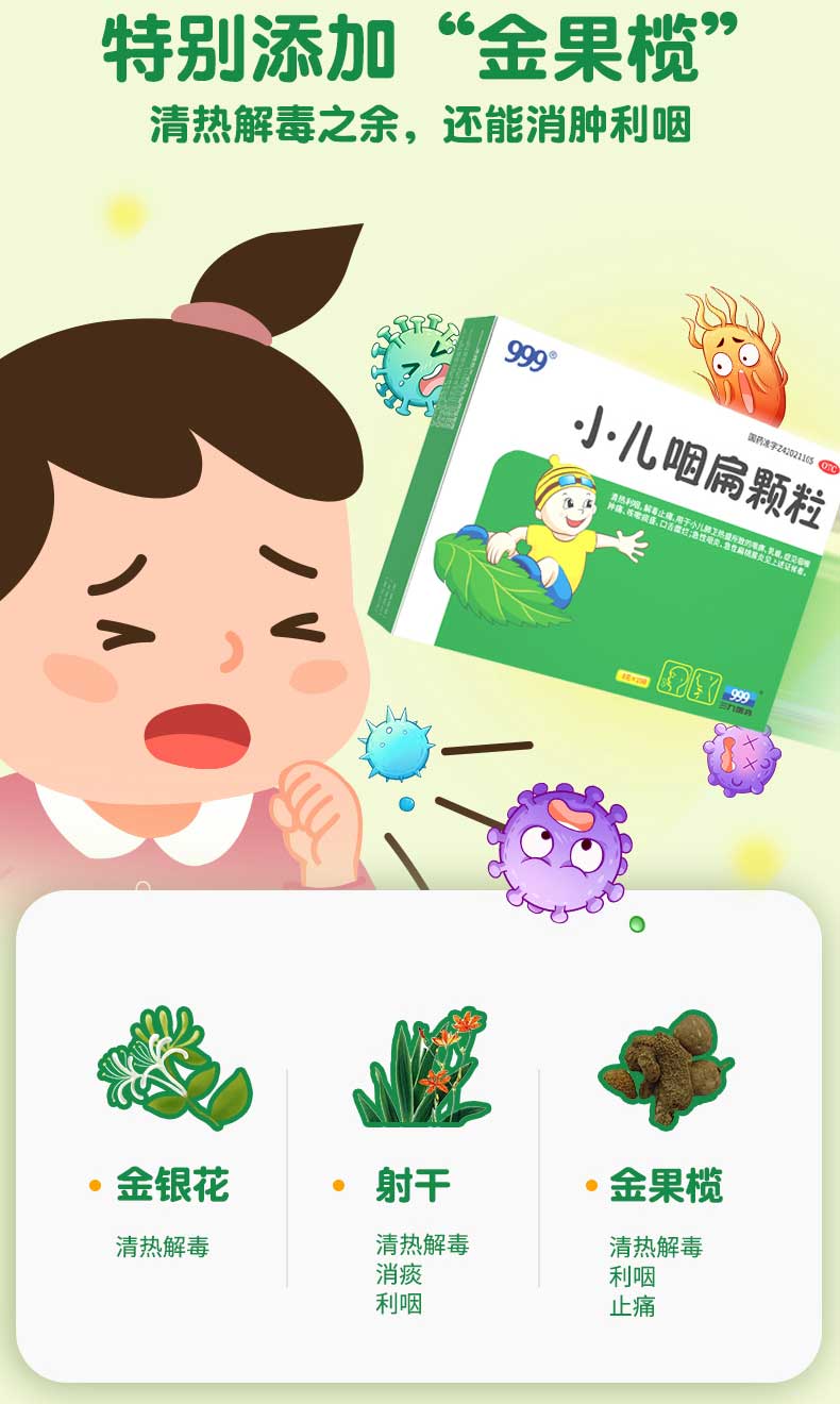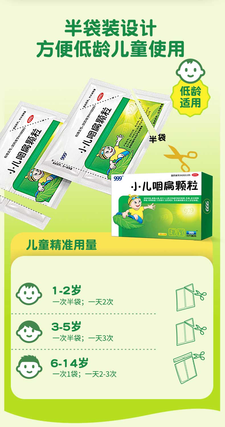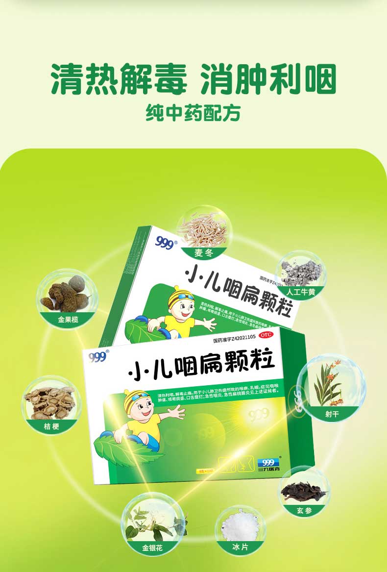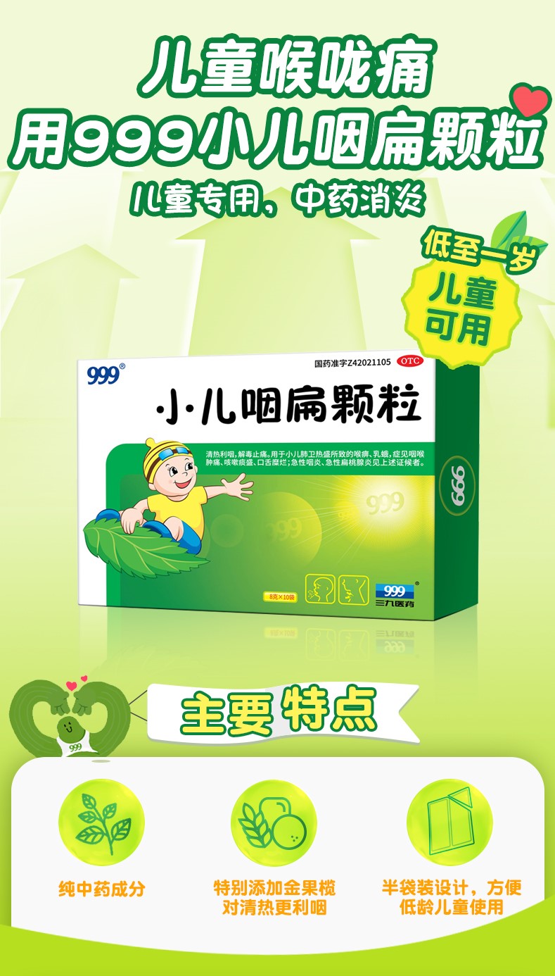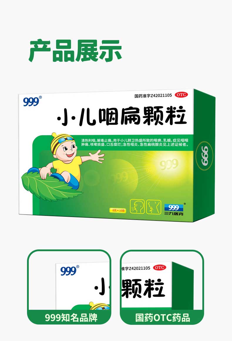 【999】小儿咽扁颗粒咽喉肿痛扁桃体炎8g*10袋 1 盒