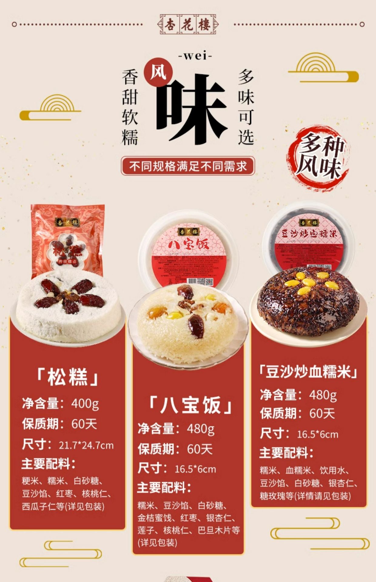 【杏花楼】上海特产 梅花松糕 素食早餐年夜饭 1碗 250 克