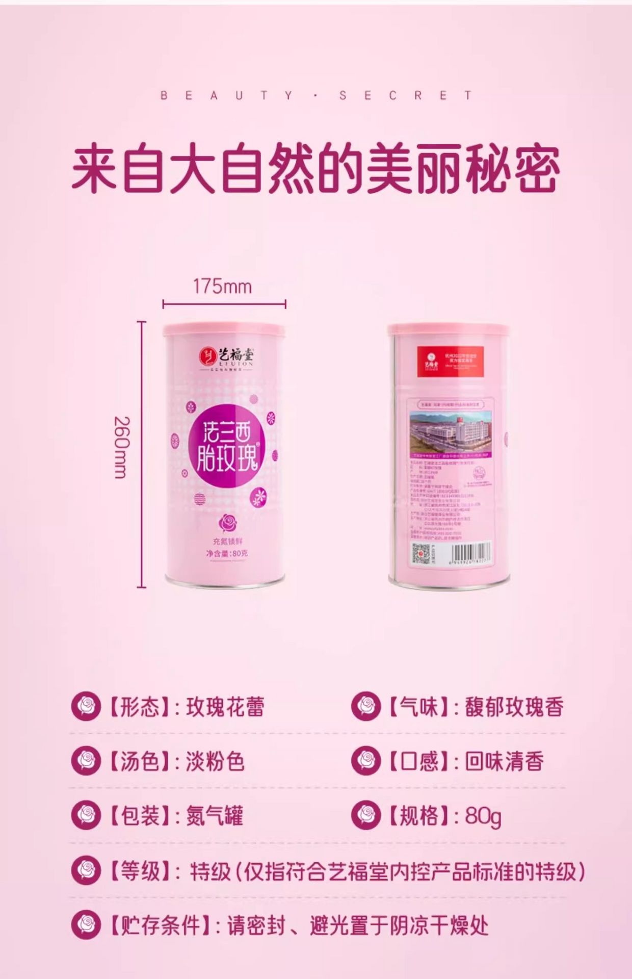 艺福堂玫瑰花茶胎玫瑰特级干花泡茶80g