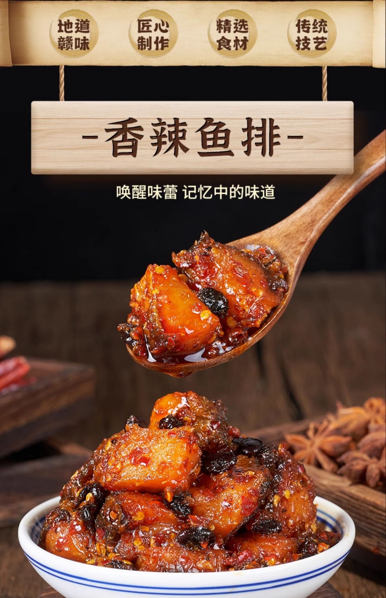 【食当头】江西特产 酒糟香辣鱼排 下饭菜 1瓶 246 克