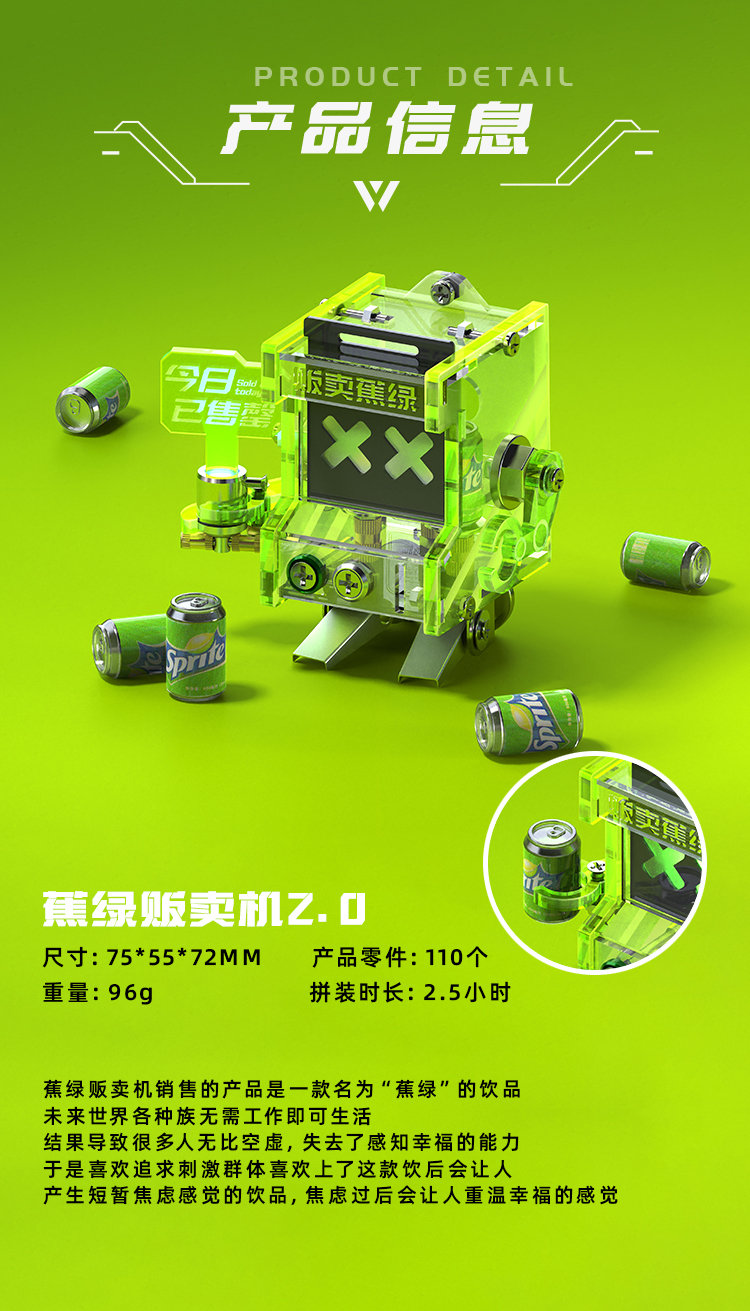 【机械党】蕉绿贩卖机 潮流积木 潮玩金属拼装 1 个
