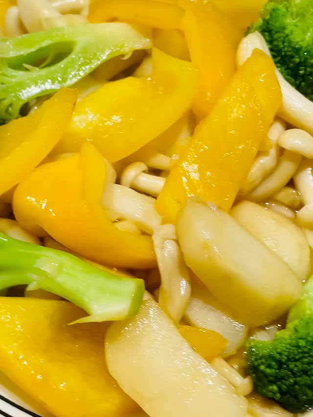西兰花、白玉菇、甜椒炒马蹄