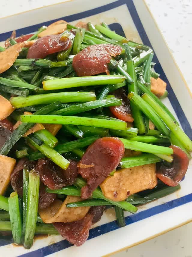 Hẹ xào lạp xưởng và đậu phụ khô