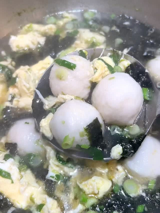 Súp cá viên, rong biển và trứng