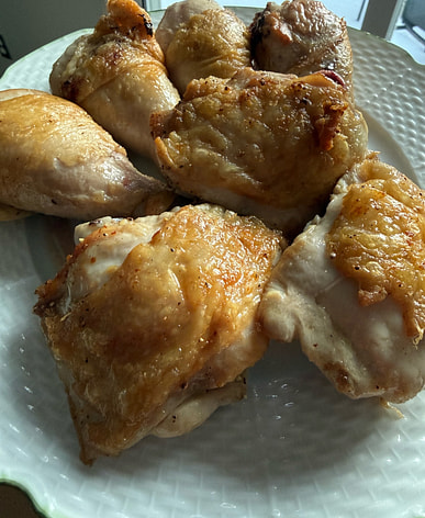 我超愛買這種雞。雖然不便宜,但用來做燉菜、湯和叁巴醬簡直絕配。我當時在鍋裡煎雞,鍋子洗乾淨了但還沒放調味料,忍不住撕下一小塊酥脆的雞皮嚐嚐鮮。真是太美味了!