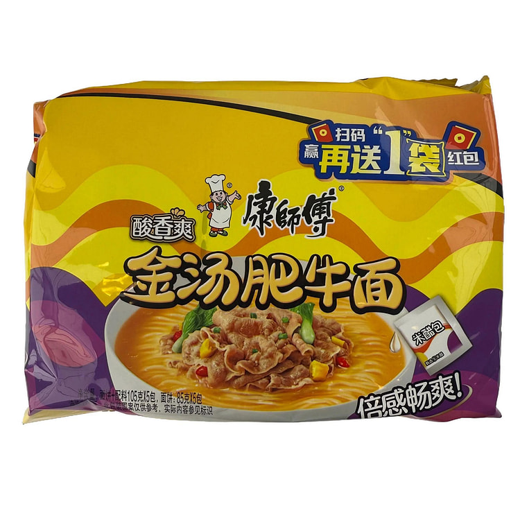$9.36康师傅酸香爽金汤肥牛面(五连包) 525 克商品从樂滿倉起