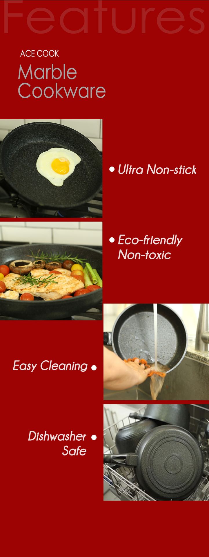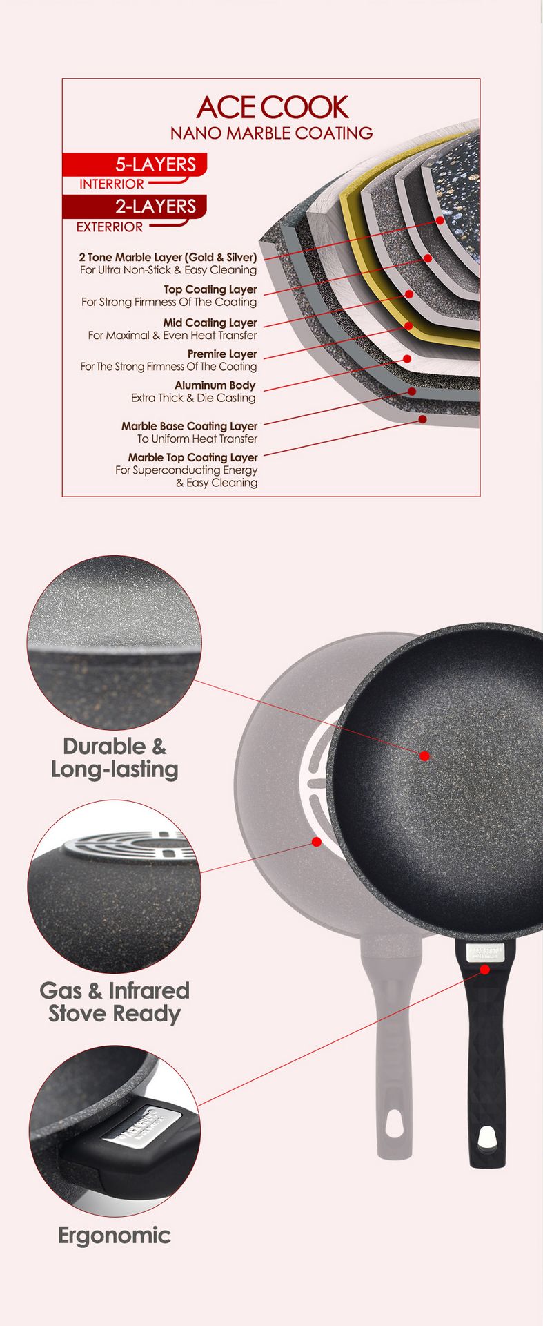 * 5层大理石不粘涂层,烹饪顺畅,易于清洁。