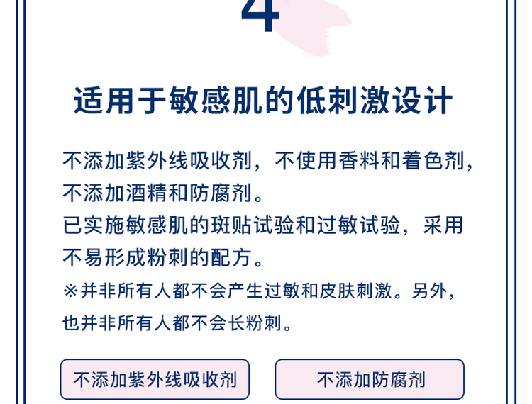 6. Suitable for sensitive skin, fragrance-free formula, no colorants, no alcohol, no parabens. Passed sensitive skin and allergy tests. However, not everyone may be free from allergies, acne, or skin irritation.