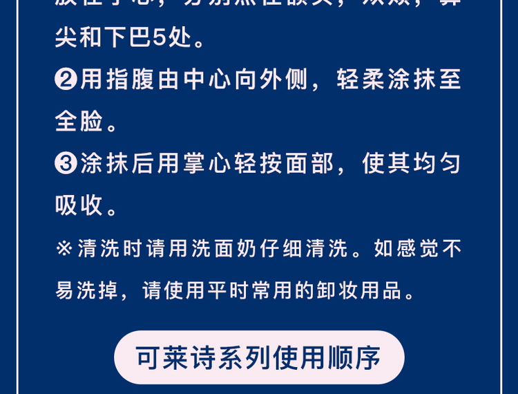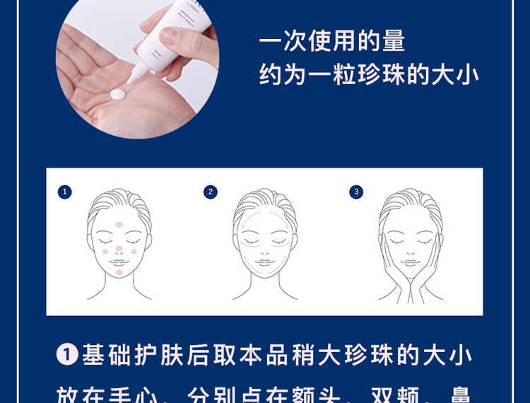 - Instructions: Apply a slightly larger amount of pearl-sized cream on five areas including the forehead, cheeks, nose tip, and chin.