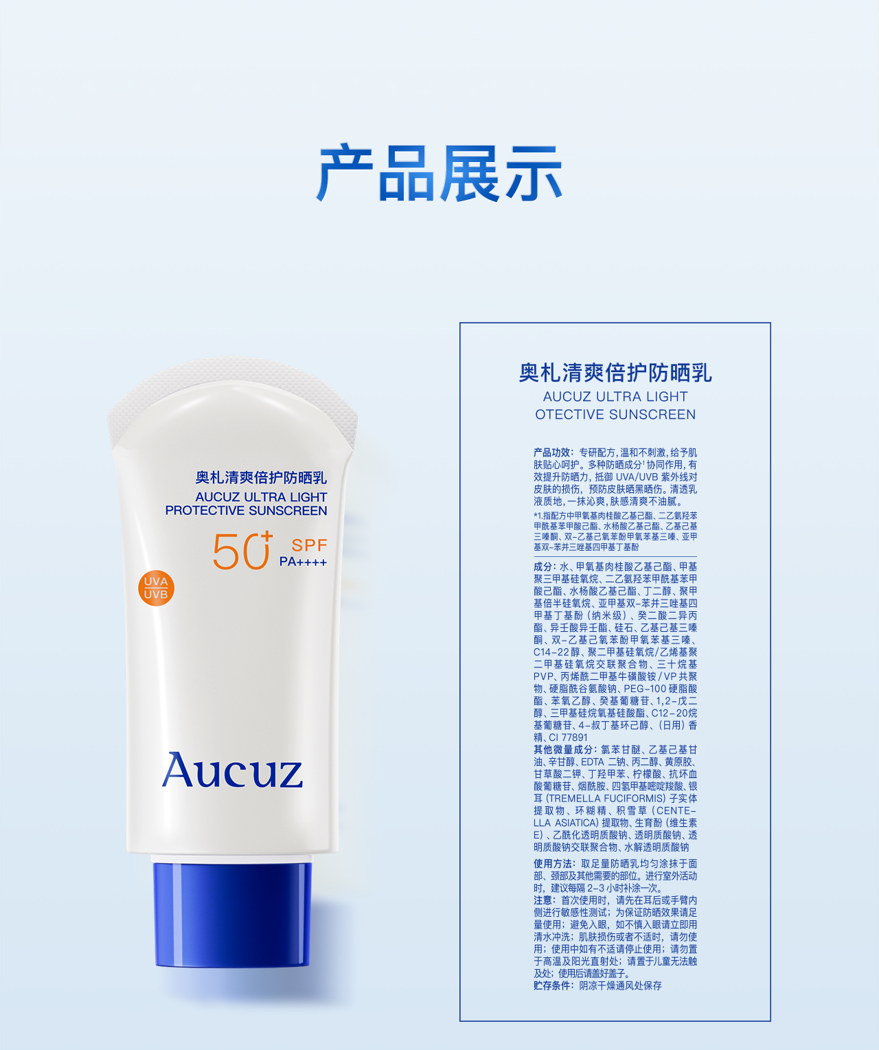 AUCUZ Ultra Light Protective Sunscreen 50 그램