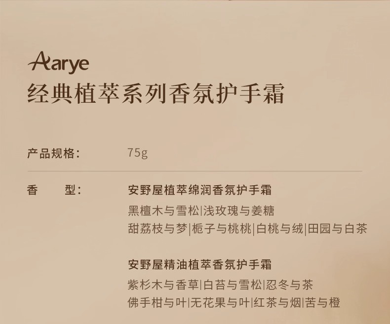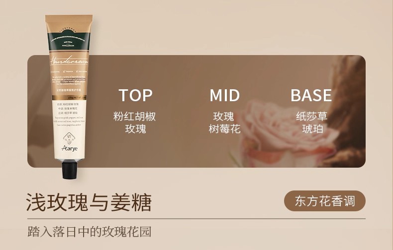 Aarye安野屋淺玫瑰與薑糖氛護手霜保溼留香75g 75 克