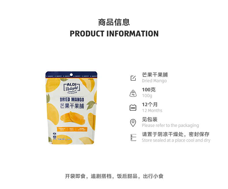 Aldi Delight Mango Dried 100 グラム
