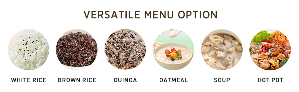 - 多功能電飯煲:配備4種菜單,可烹製白米飯/糙米飯、藜麥、燕麥片、湯,甚至火鍋,滿足您不同的烹飪需求。
