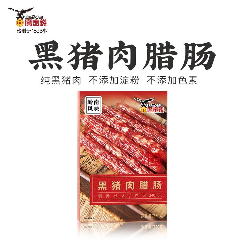 鹰金钱黑猪肉广式腊肠正宗广味香肠250g*3 750 克