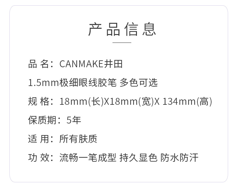 Product name:canmake Lasting Liquid Liner