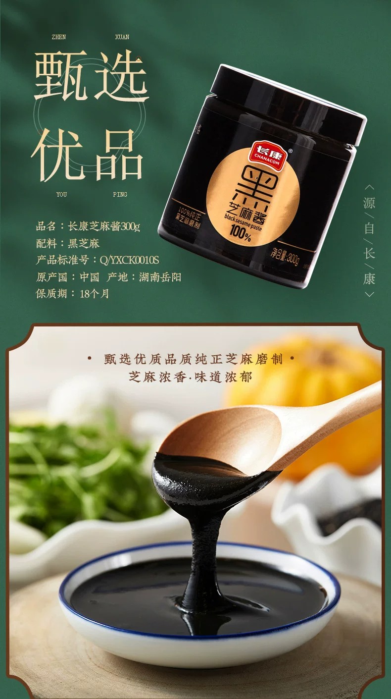 长康 纯黑芝麻酱零添加物理压榨酱料烘培吐司面包蘸酱 300 克
