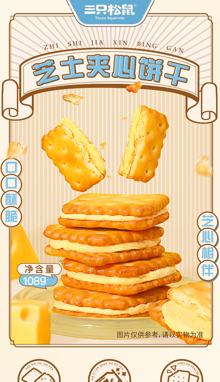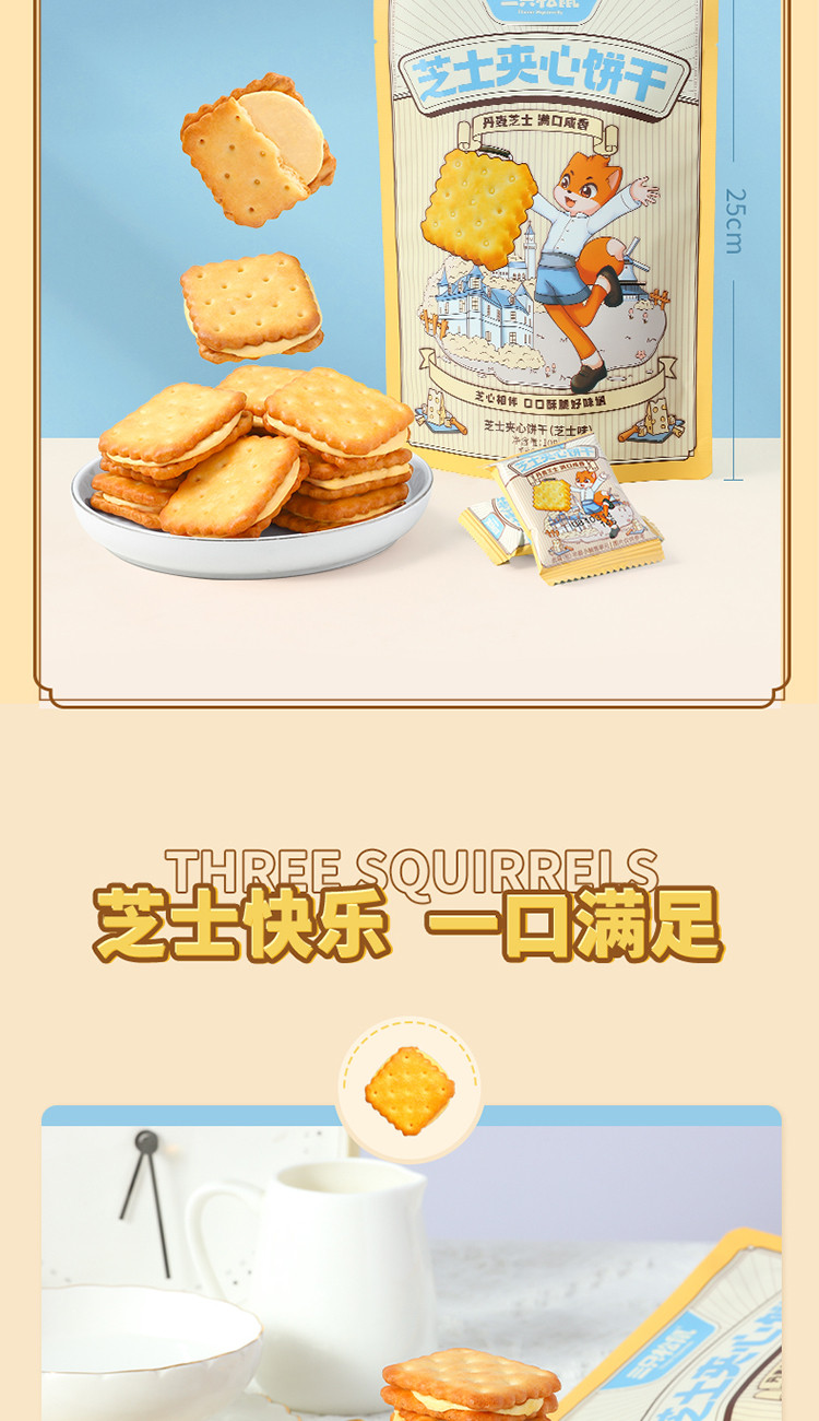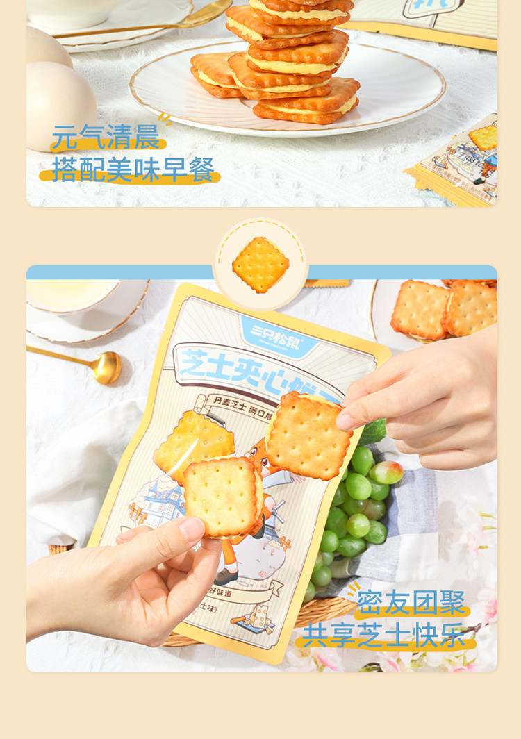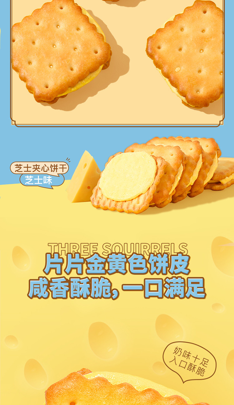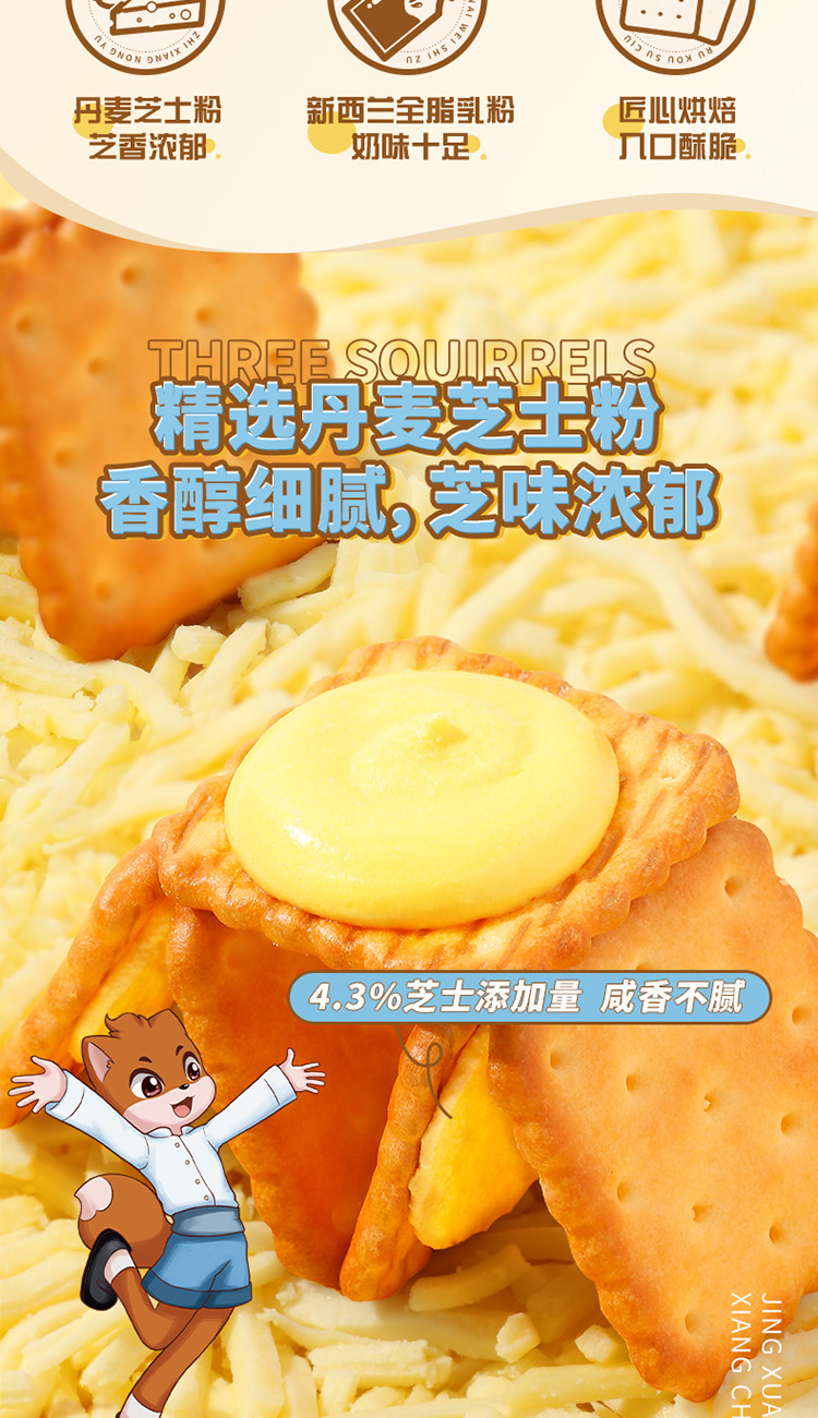 【三隻松鼠】芝士夾心餅乾袋辦公室零食休閒 108 克