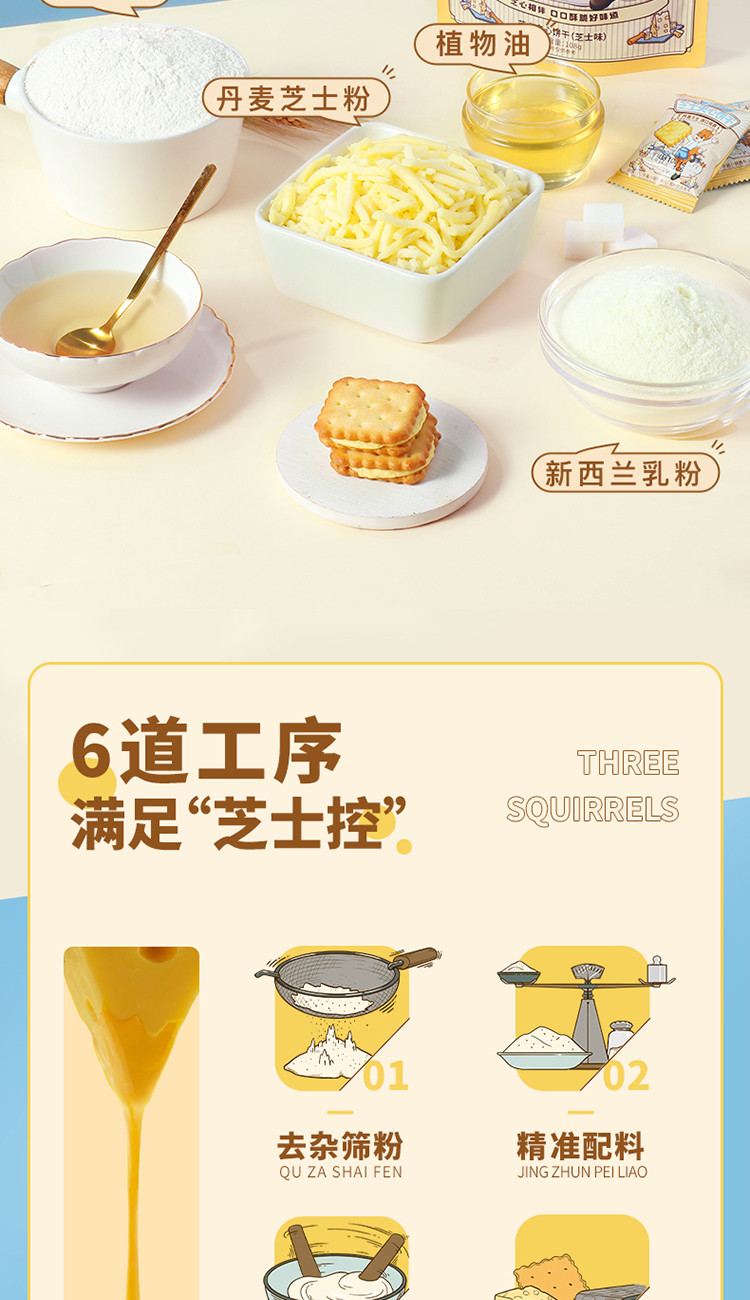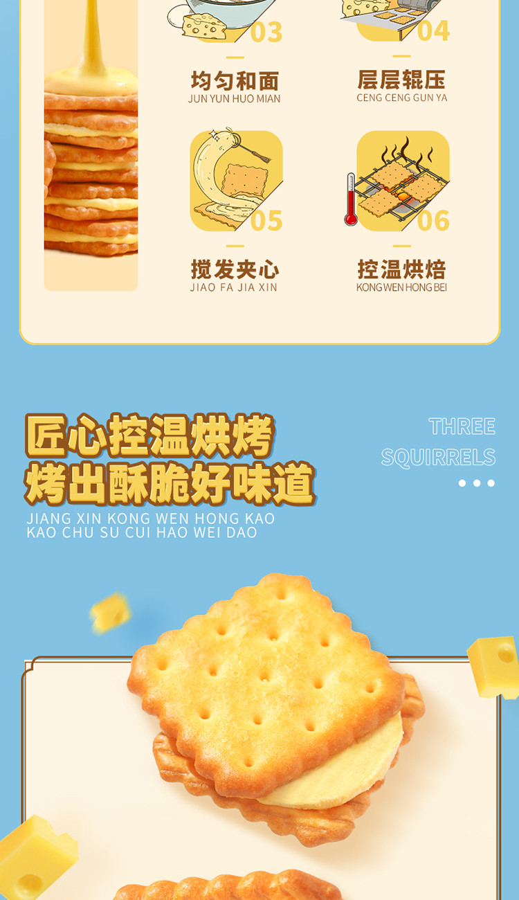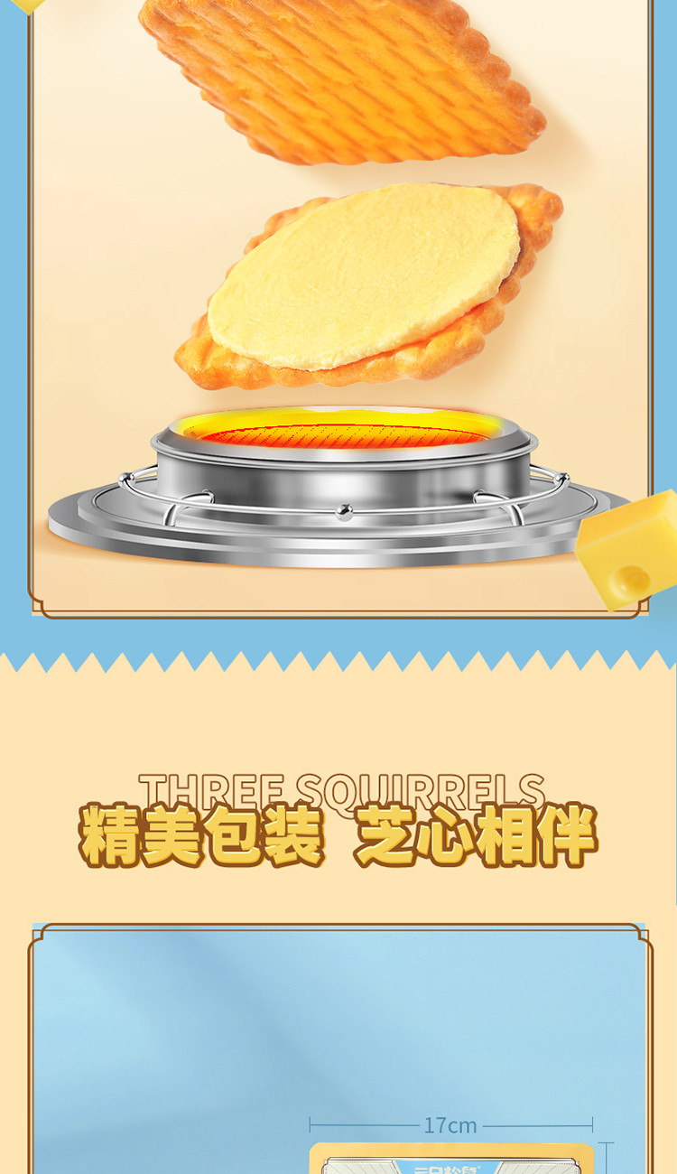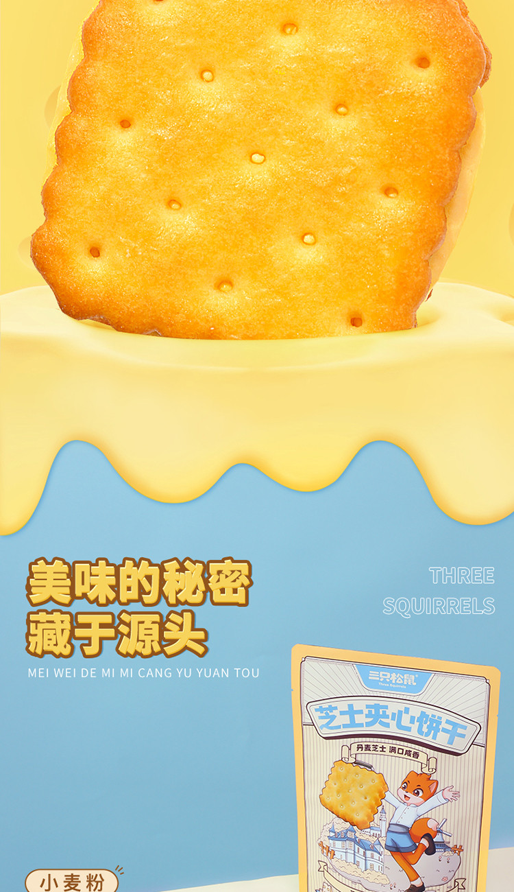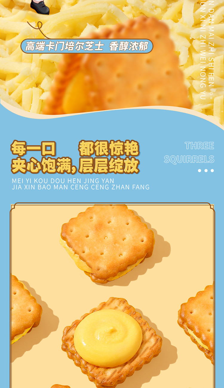 【三隻松鼠】芝士夾心餅乾袋辦公室零食休閒 108 克