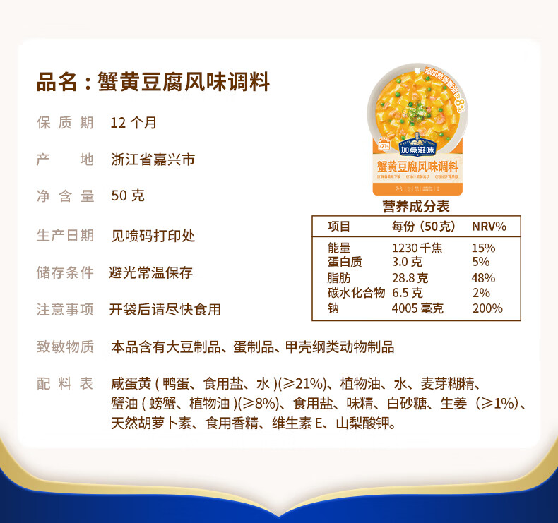 Crab Roe Tofu Flavor Seasoning 50 グラム