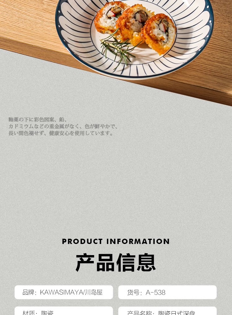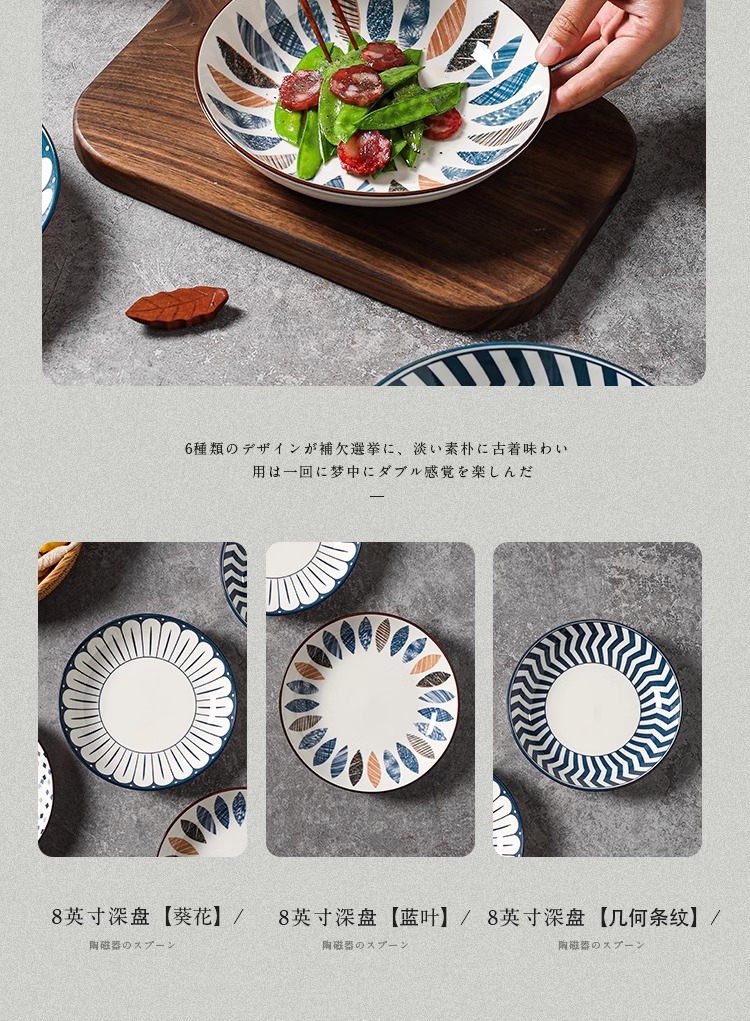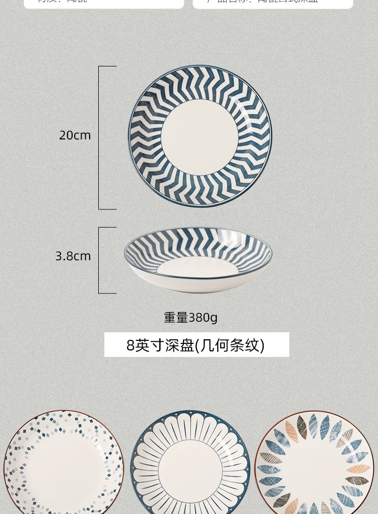 川島屋 日式陶瓷盤子 8英寸深盤(混色四隻裝) 1 份