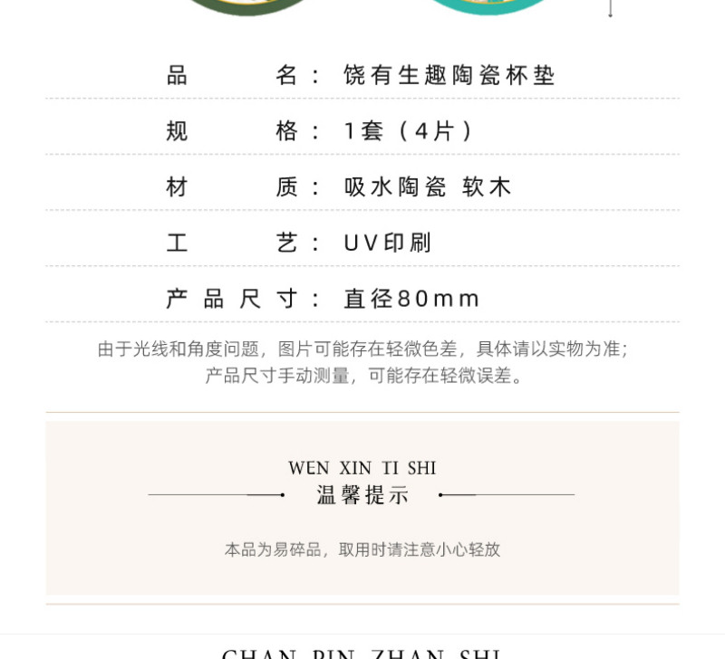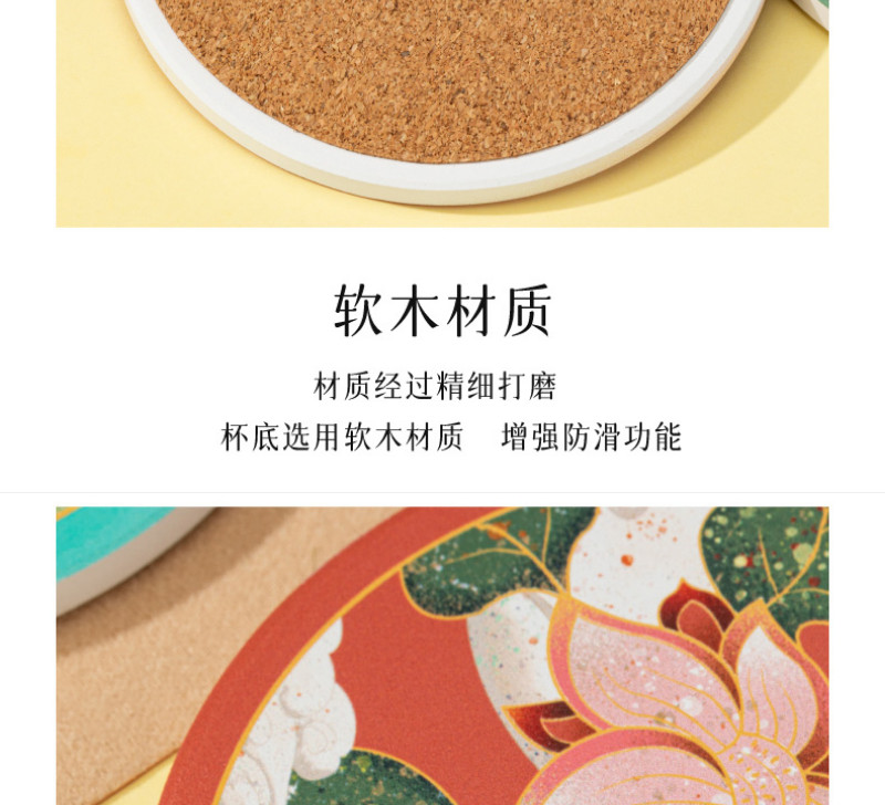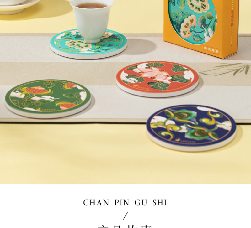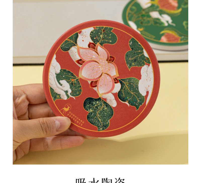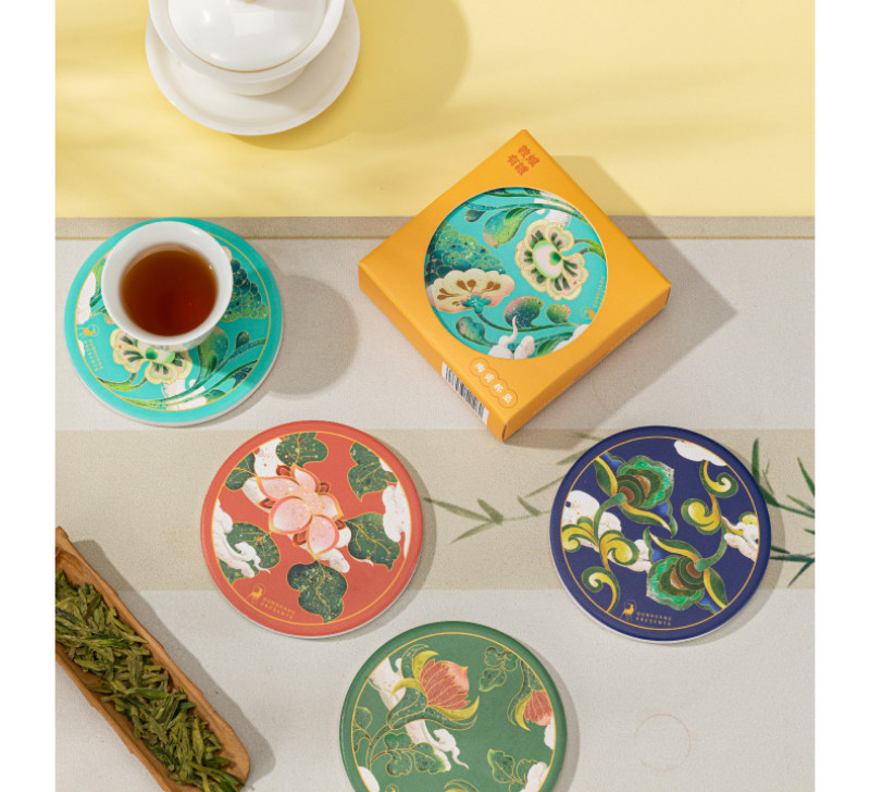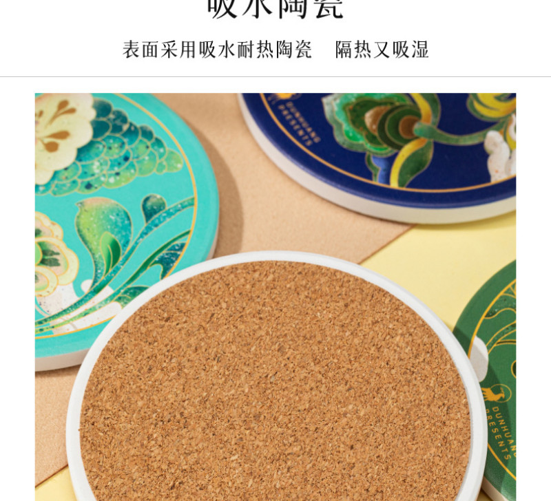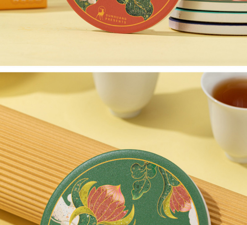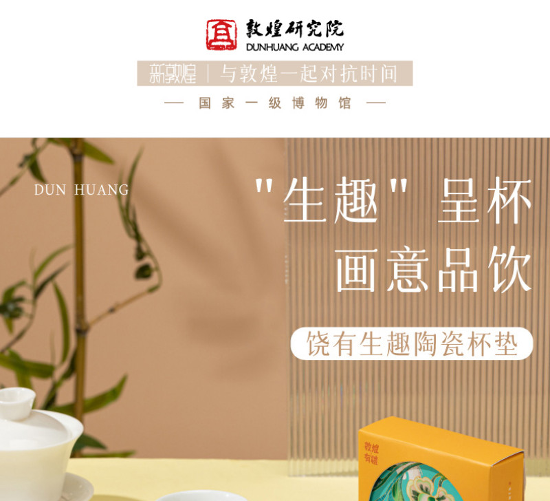 【敦煌研究院】吸水陶瓷茶杯垫-饶有生趣陶瓷杯垫套装 4 个