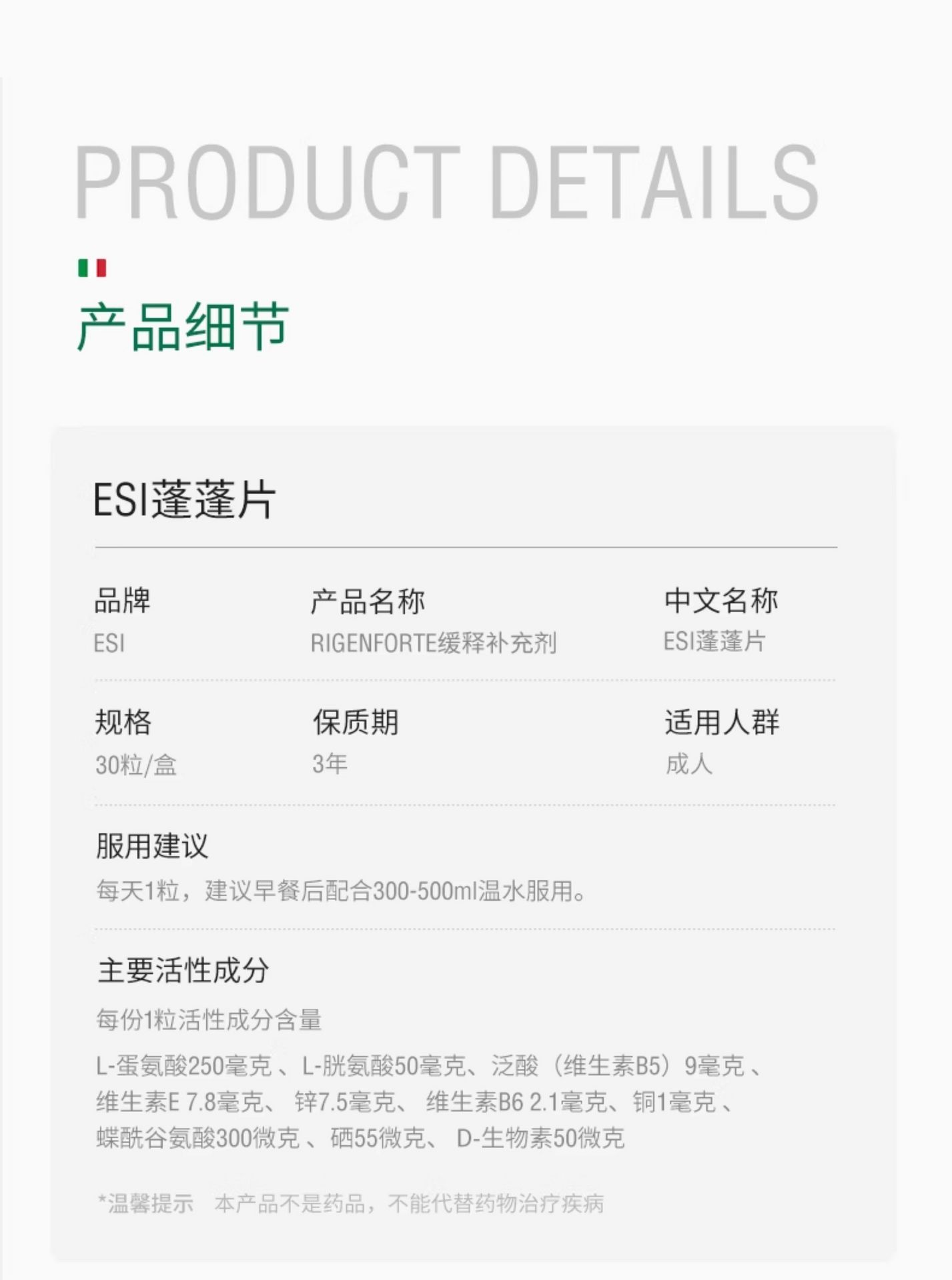 産地:意大利單位數量:1 盒