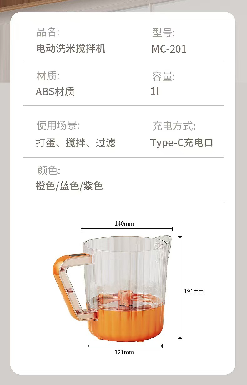 电动多功能搅拌机打蛋洗米打发滤沫食品级材质紫色 1 个