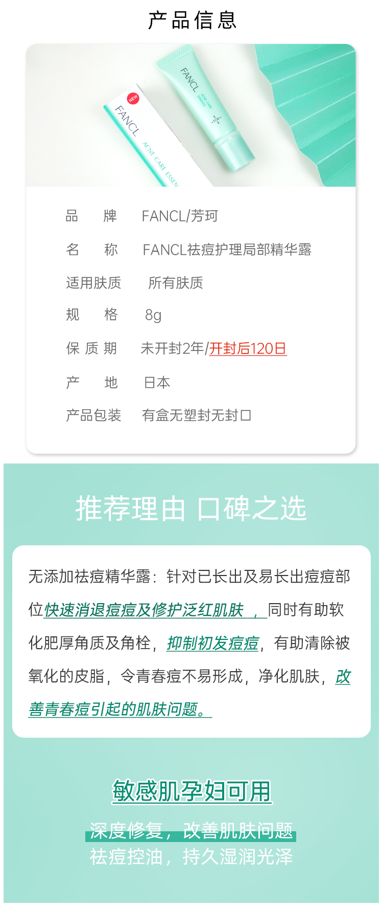 【日本直邮】FANCL 祛痘精华 8 克