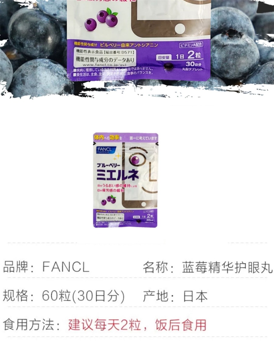 FANCL Blueberry Eye Protection Tablets 30 Days 60 tablets 1 phần