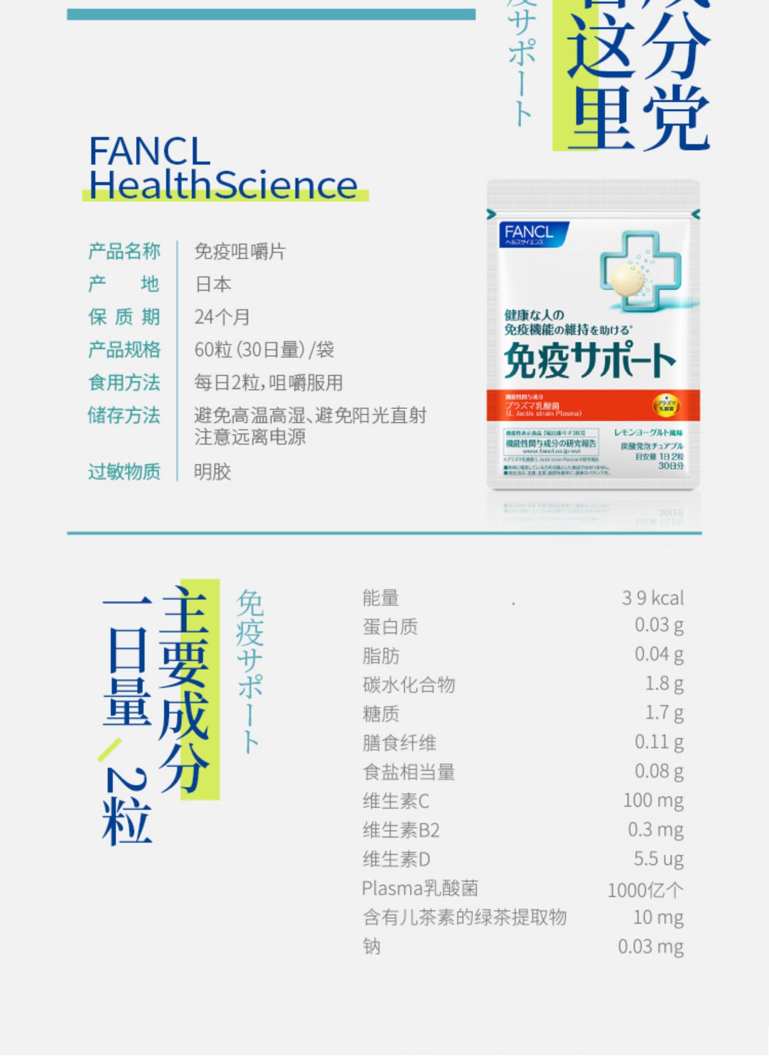 FANCL Immune Support VC Chewable Tablets 1 cái