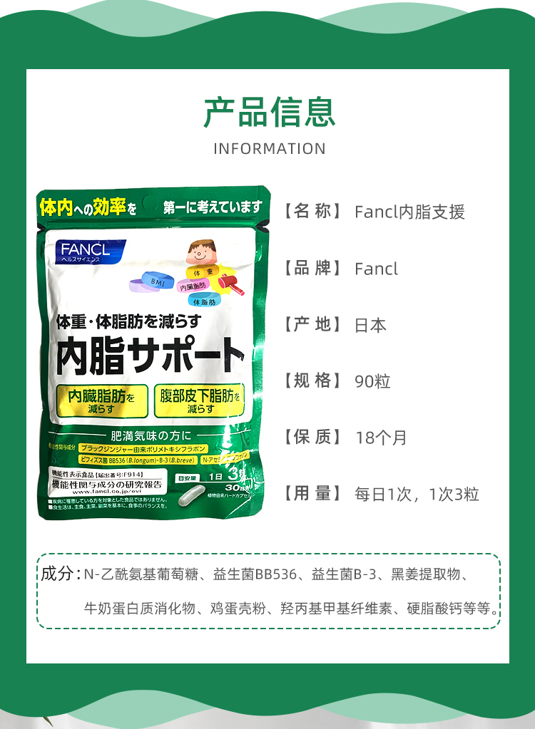 FANCL inner fat support 90 tablets/ 1 개입