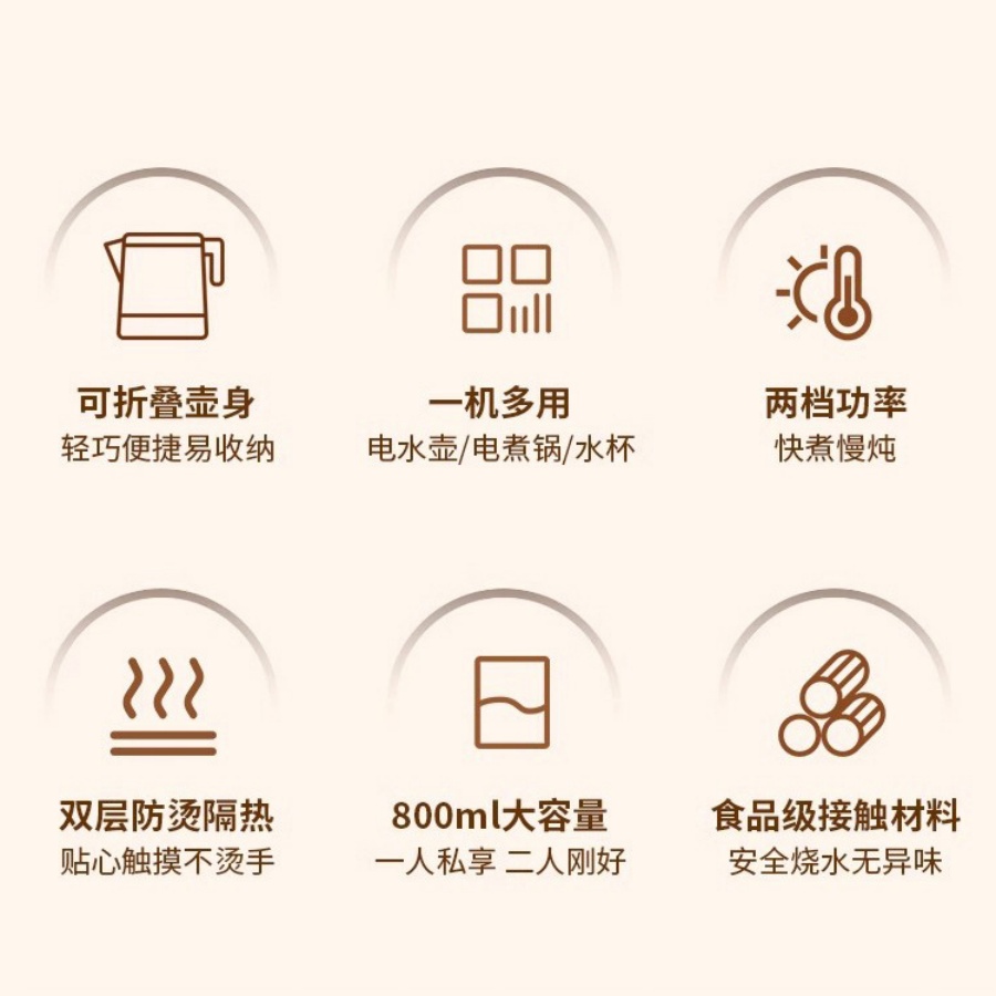 便攜式旅行必備摺疊電熱水壺手柄摺疊露營野餐戶外出行 1 把