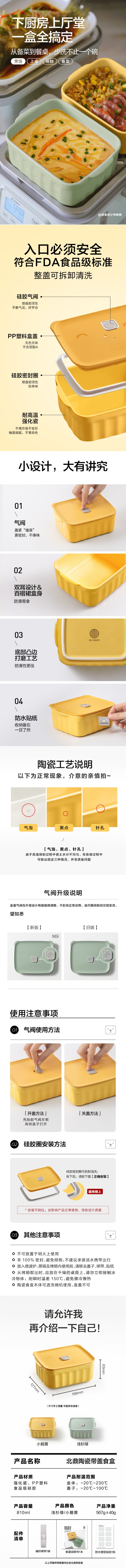 Food Container Bowl 810ml Yellow 1 개