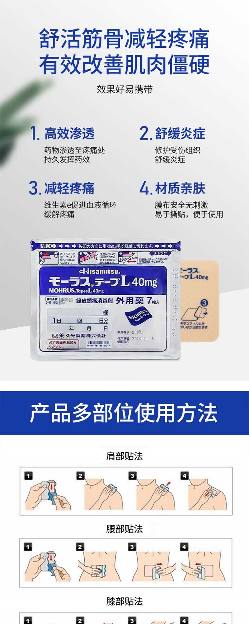 Tear off the anti-film and stick it on the shoulder, waist, knee and other affected areas.