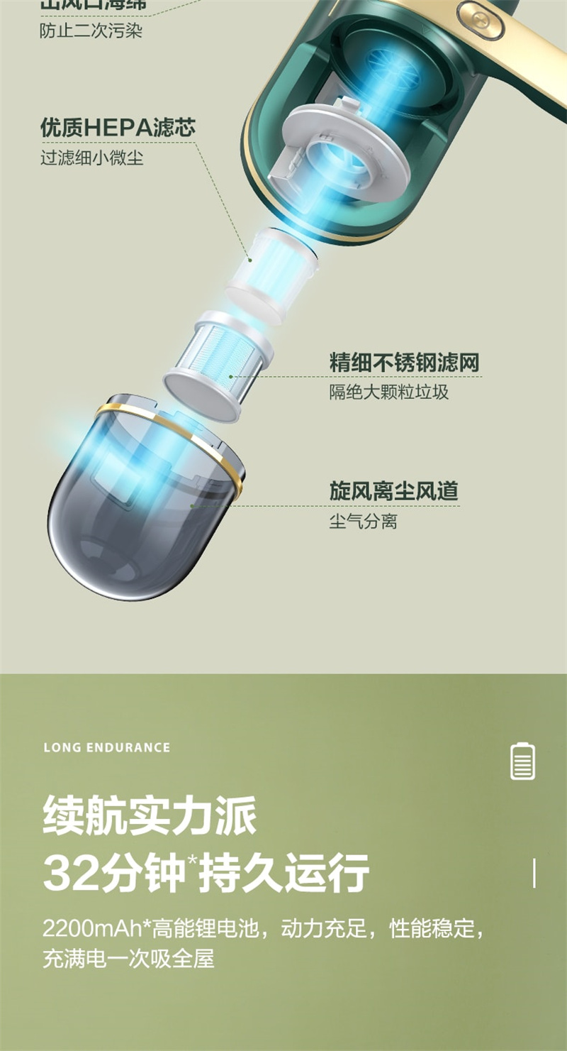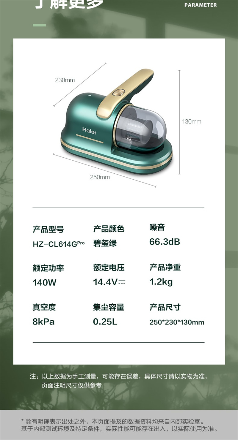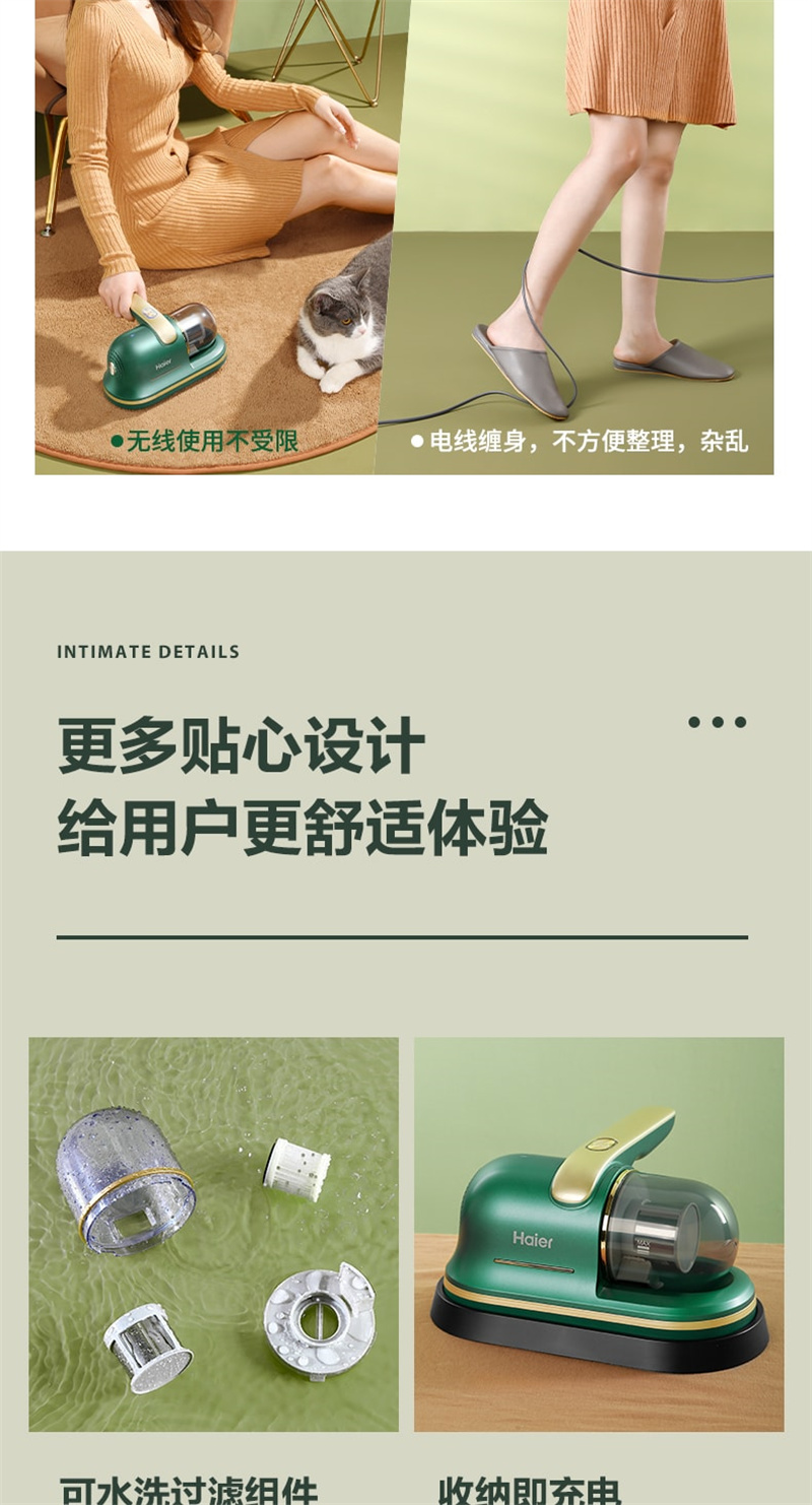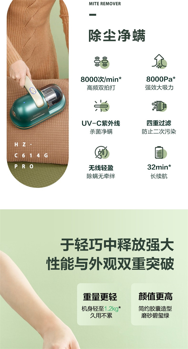 海尔家用无线除螨仪碧玺绿款
