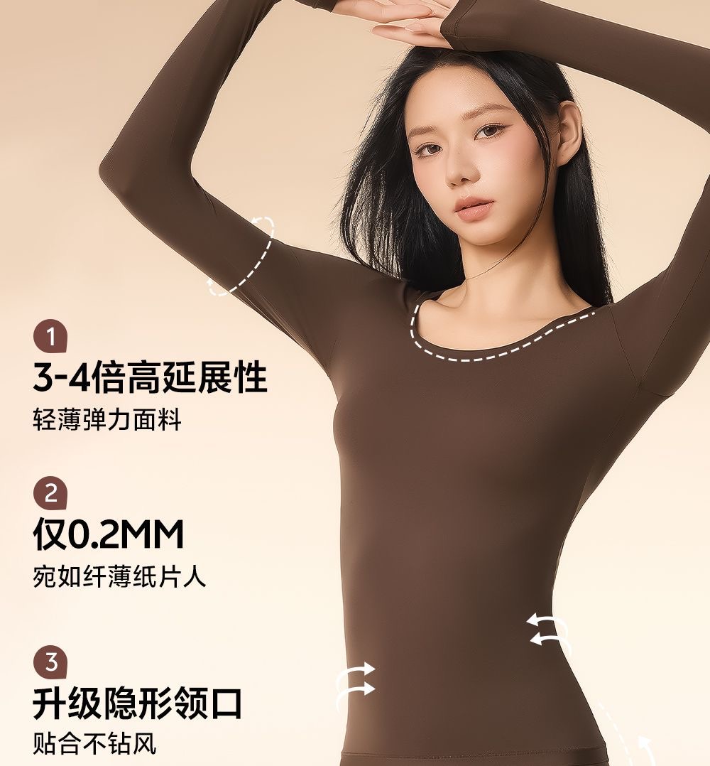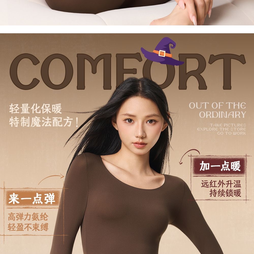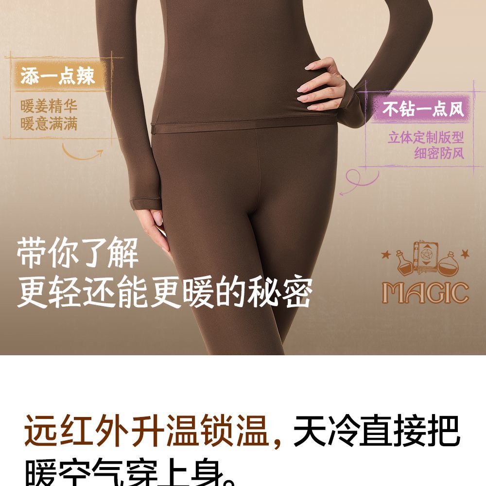 草本初色保暖肌底衣 薄款隱形美膚髮熱秋冬套裝 黑色 1 份